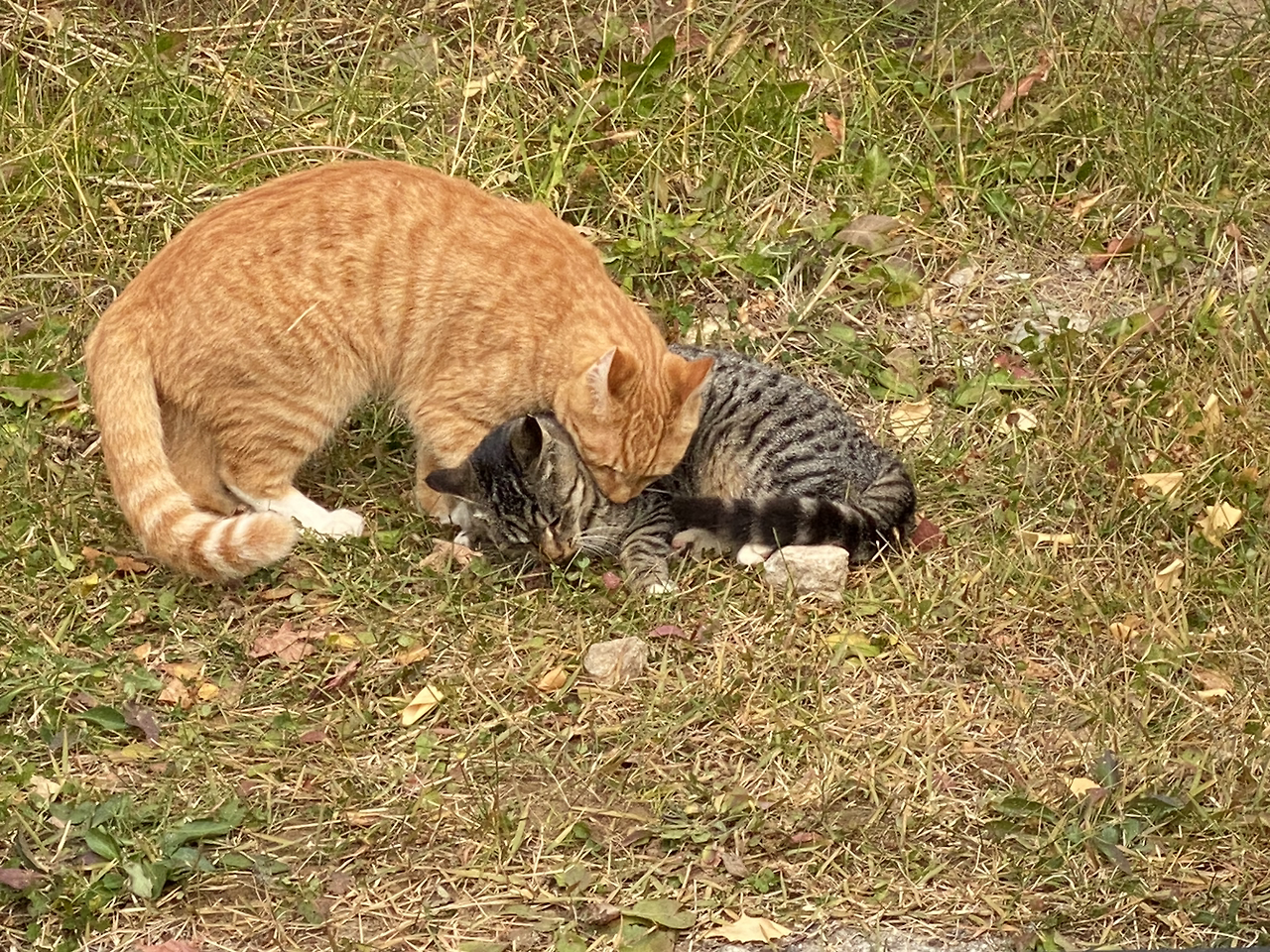 그 후부터 털뭉치는 현관에 있다가 출근하는 나를 기다렸다는 듯이 몇 걸음 앞에서 에스코트하듯 걸어가기도 했다. 어떤 날은 분리수거장에 쓰레기를 버리러 가면 어디선가 나타나서 발등에 몸을 비비고, 그런 털뭉치에게 어떻게 대해야 할지 몰라 엉거주춤 서 있으면 다리 사이를 왔다 갔다 하기도 했다. 털뭉치는 나한테만 그러는 게 아니었다. 관사 현관 계단 주변에서 사람들이 지나갈 때마다 나한테 그랬던 것처럼 반가운 척을 했다. 겁 많던 아기 고양이가 붙임성 좋은 길냥이로 자랐구나 싶었다.