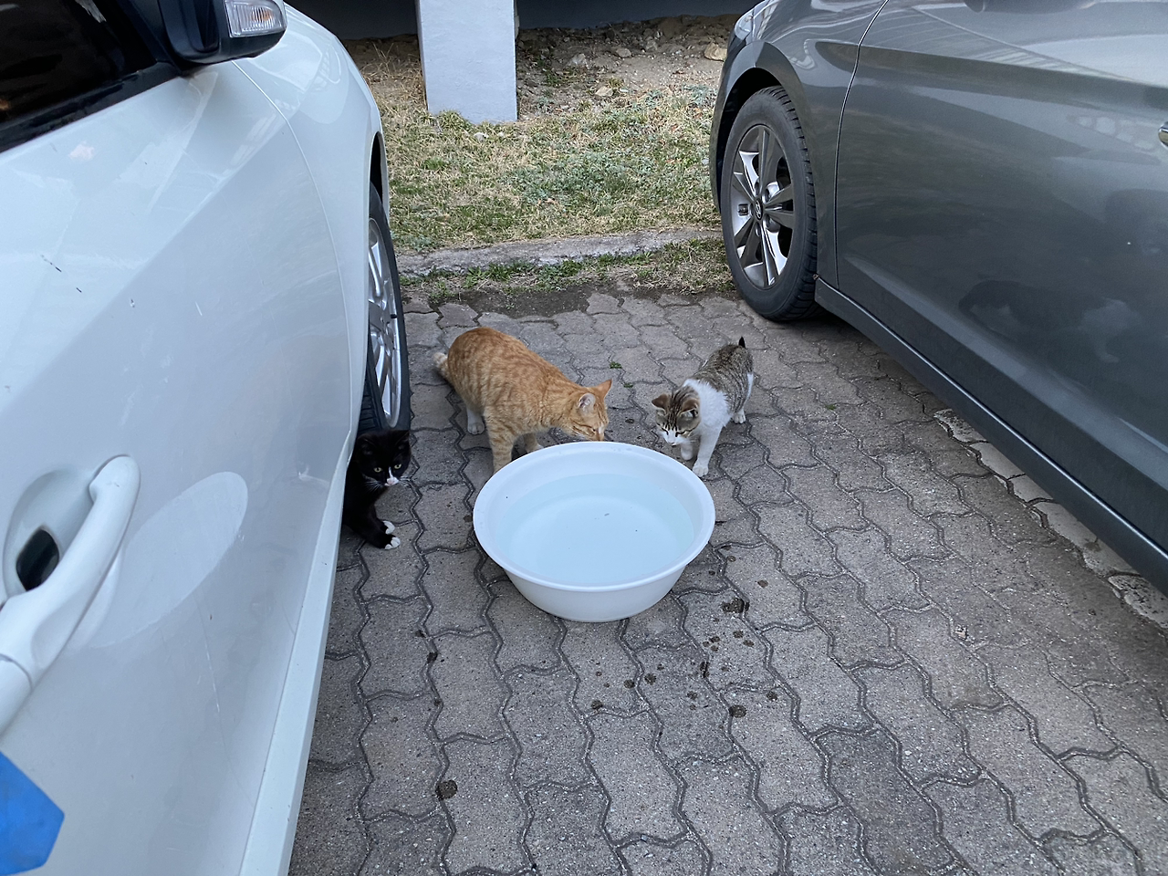 고양이 선생님이 주는 사료를 먹으러 동네 길냥이들이 모여들었다. 어떤 날은 새들도 날아와서 고양이 사료를 먹고 가기도 했다. 고양이들이 모여들자 여러 가지 문제들이 생겼다. 고양이가 차 아래에 있는 줄 모르고 칠 뻔했다든가, 고양이가 차 위에 올라가 있다든가, 관사 복도에서 고양이 똥이 발견된다든가, 늦은 밤 고양이 울음소리가 듣기 싫다든가... 그때마다 치즈와 고양이 선생님이 욕을 먹었다.