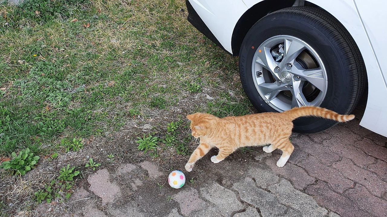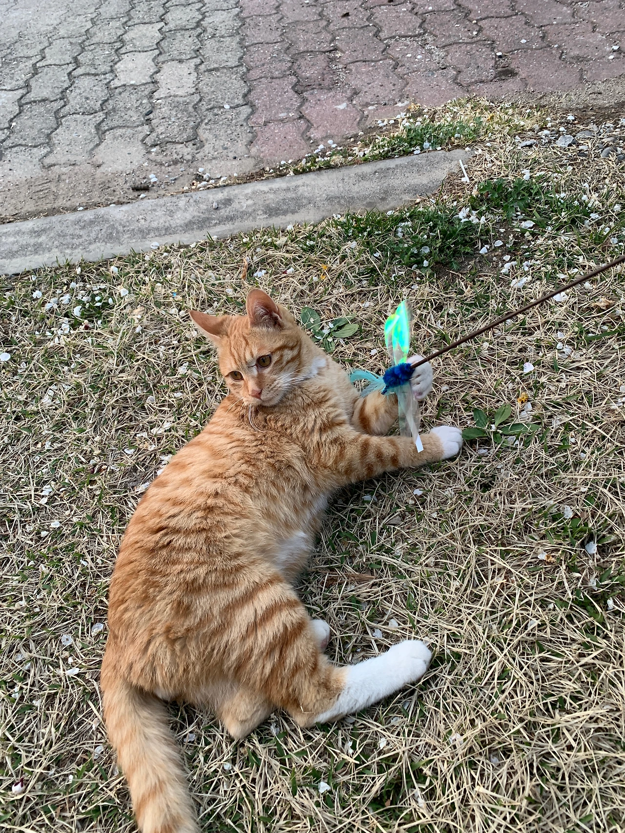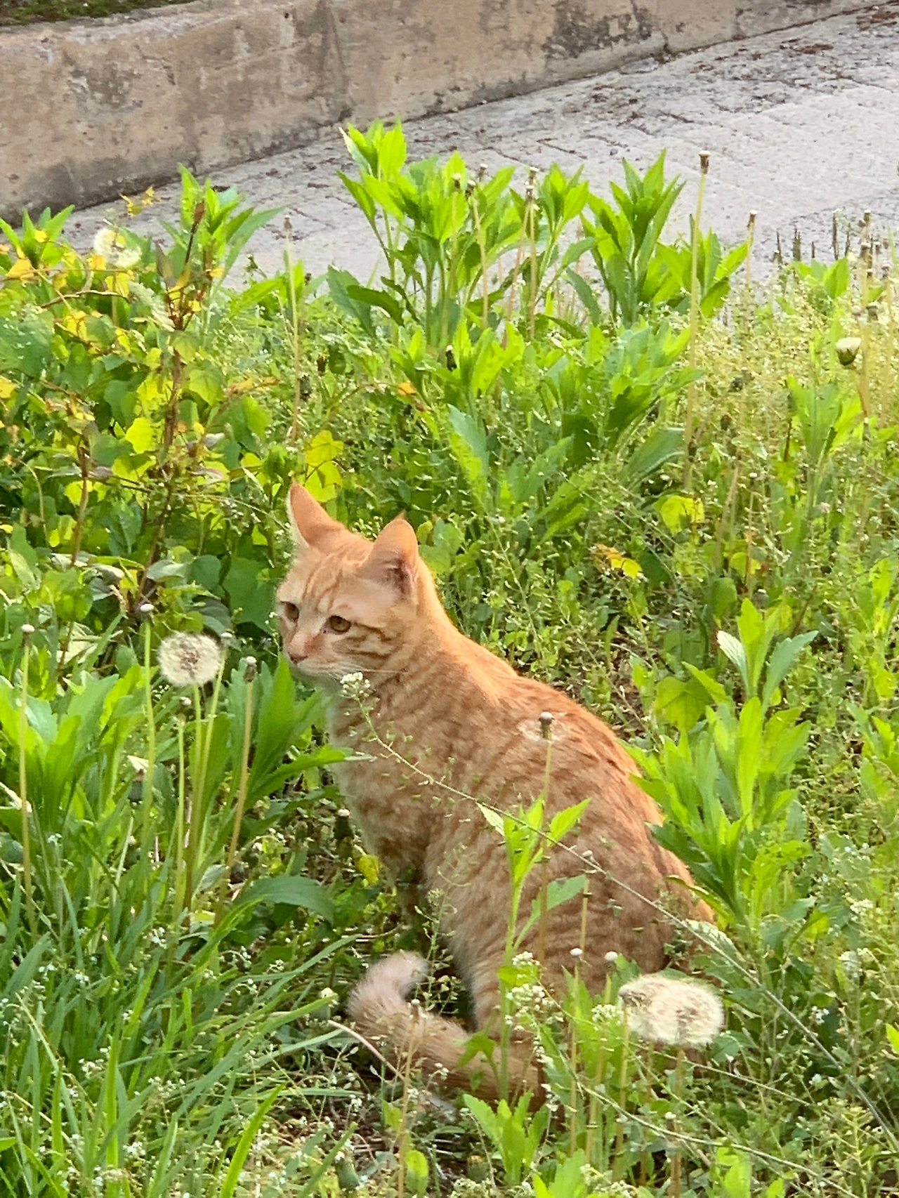 겨울을 지내며 가끔 털뭉치는 이 추위에 어디서 어떻게 지낼까, 굶지는 않을까 생각했다. 겨울이 지나고 봄이 왔다. 주차장에 차를 대고 차 문을 여는데 노란색 뭔가가 차에 휙 뛰어올랐다. 작은 고양이였다. 나와, 이리 나와, 하며 차에서 내리게 했더니 내 발 주변에 눕고 뒹굴며 정신없이 굴었다. 난 고양이를 그렇게 좋아하는 사람이 아니다. 어이없는 상황에 당황해하다 자세히 보니 털뭉치였다. 겨울에 밖에서 얼어 죽지 않고 무사히 봄을 맞았구나 싶어서 대견했다.