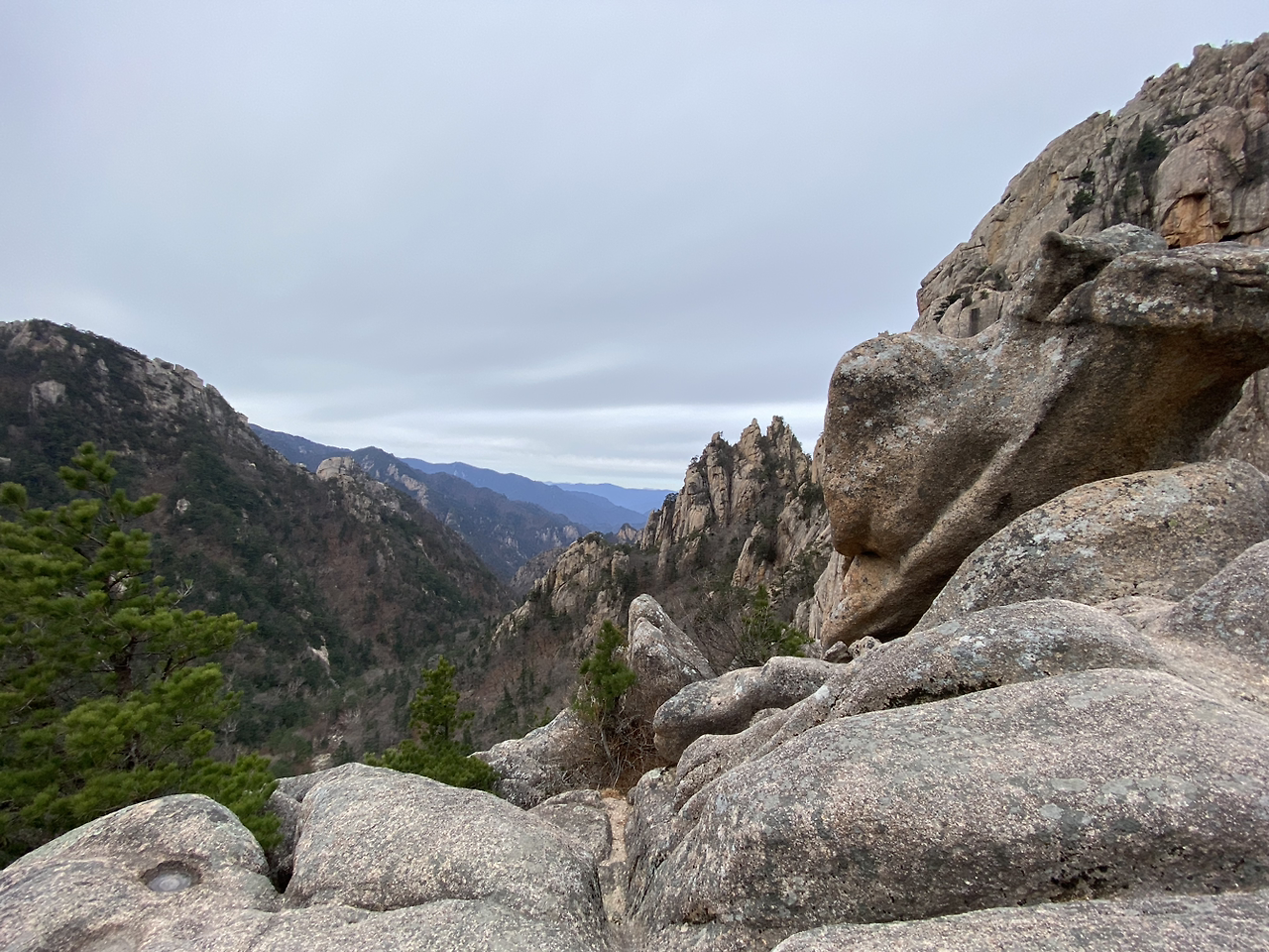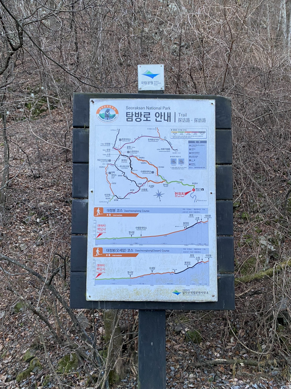 봉정암 경치가 아무리 좋아도 계속 있을 수는 없었다. 안내지도판에 오세암으로 내려가는 길이 어려운 길이라 표시되어 있었지만 미역국밥도 먹고 용아장성도 보고 공룡능선도 봤더니 용기가 솟구쳤다. 수렴동 계곡으로 가지 않고 오세암 방향으로 내려가기로 했다. 그러나 봉정암에서 내려가기 시작한 지 얼마 되지 않아 곧 그 길로 방향을 잡은 걸 후회했다.