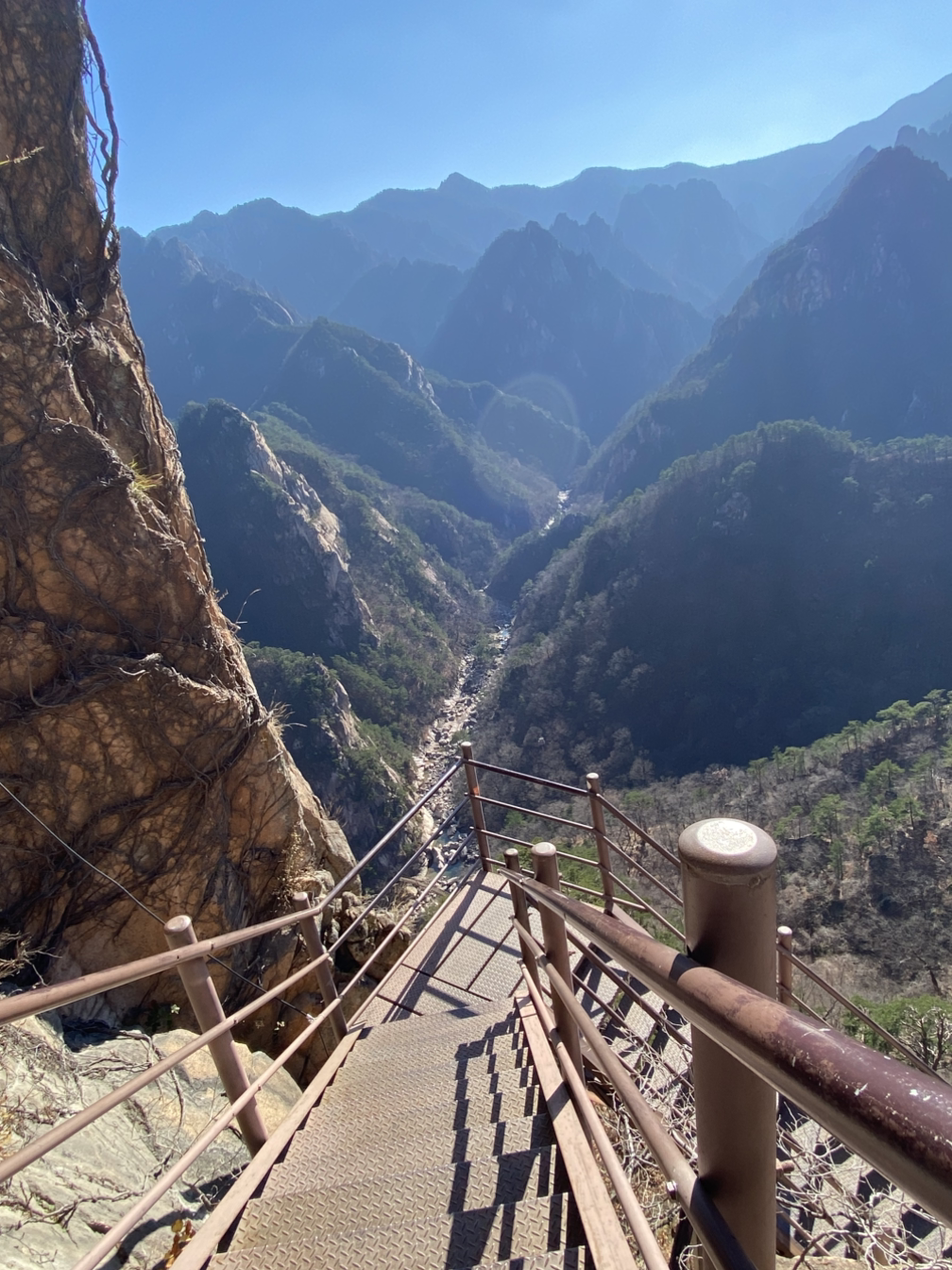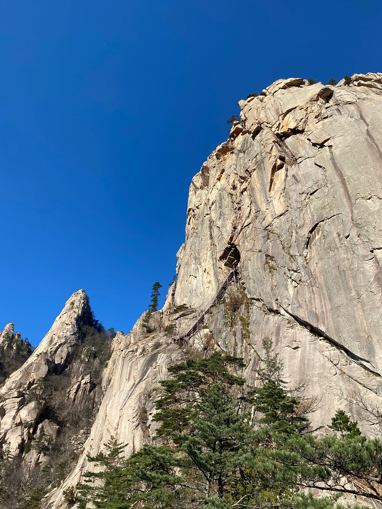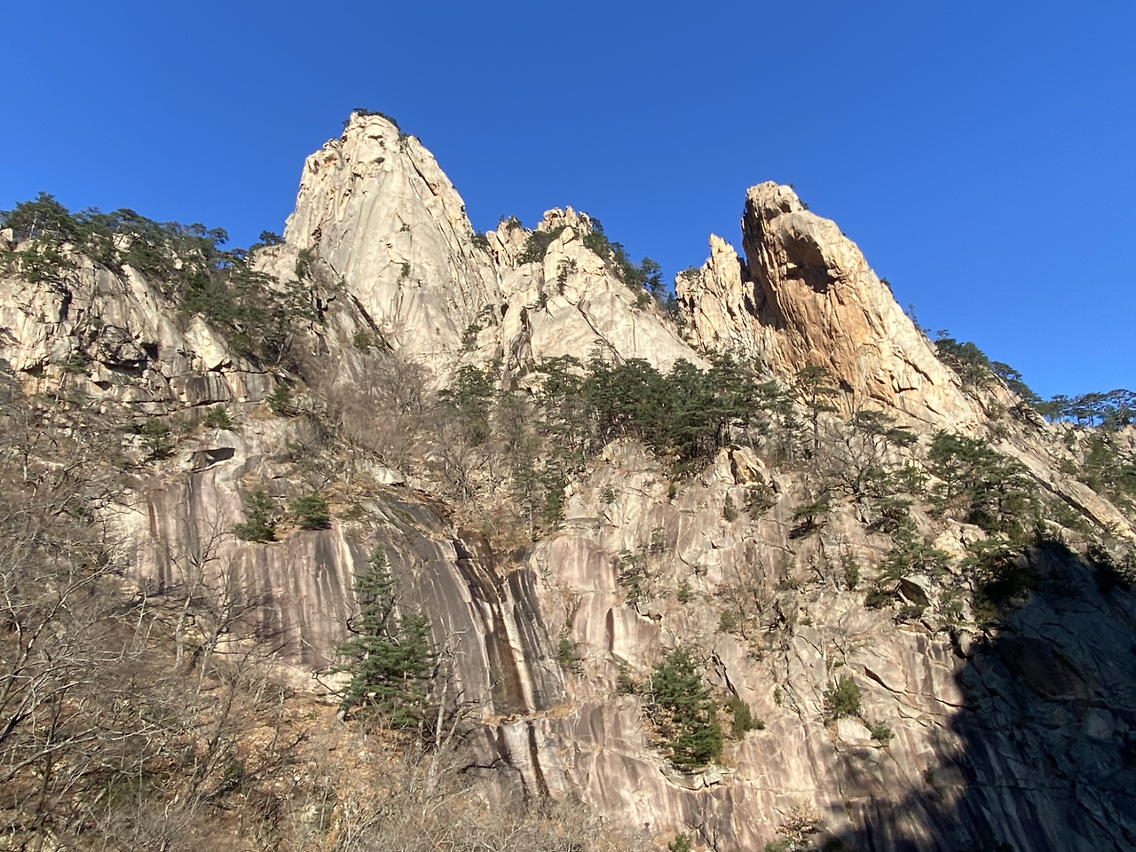 어제는 엎어졌지만 지난주는 넘어졌다. 지난주 일요일에 a, b와 설악산 금강굴에 다녀올 때 비선대 앞 넓은 데크에서 간식을 먹다가 핸드폰을 데크 아래로 떨어뜨렸다. 얼른 계곡과 가까운 쪽 계단으로 내려가서 데크 난간 틈으로 몸을 구부려 아래로 내려갔다. 눈이 밝은 b가 데크 위에서 핸드폰의 위치를 알려줘서 핸드폰을 주웠다. 다행히 핸드폰이 낙엽 위에 떨어져서 부서지지 않았다. 핸드폰이 깨지지 않았고 물에 빠지지도 않아 좋아서 약간 흥분했었나. 데크로 올라오기 위해 바위를 건너가다가 물기가 살짝 묻은 바위에 발을 올렸다가 그만 그대로 엉덩방아 찧으며 넘어졌다. 물기가 얼어있었던 것이다. a와 b는 위에서 짐을 챙기느라 넘어지는 나를 보지 못했다. 지나가던 등산객 세 분이 "아이구구, 조심하세요, 괜찮으세요, 손 잡아 드릴게요"하며 데크 난간 틈 사이로 내가 올라갈 수 있도록 손을 잡아줬었다. 그 물기가 살얼음일 거라고는 생각지도 못했다.