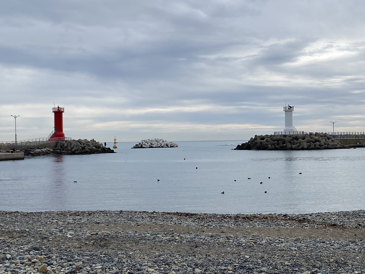 다시 걸었다. 가자마자 따뜻한 방에 누워서 푹 지져야지 생각하니 좀 더 힘이 나는 것 같았다. 임랑해수욕장 도착할 즈음에 가는 빗방울이 떨어지기 시작했다. 임랑 해수욕장은 아주 작고 조용한 곳이었다. 맨발 걷기 하는 몇 사람과 엠티를 온듯한 젊은 학생들이 보였다. 해변 왼쪽 끝에 해수욕장과는 어울리지 않는 거대한 콘크리트 건물이 보였는데 검색해 보니 그곳이 고리원자력 발전소였다.