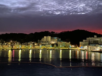 통통배들이 바다로 나가는 소리에 깨서 시계를 보니 새벽 3시 43분이었다. 그때부터 또 잠이 오지 않아 해파랑길 3코스 맛집과 숙소에 대해 검색을 했다. 그러다 언제 잠들었는지 모르게 자다 깨니 아침이었다. 이불을 안 덮고 자겠다더니 이불을 목까지 끌어당기고 잘만 자더라고 k가 놀렸다. '고향집에 온 것 같이 편안해서 나도 모르게 그렇게 했나 보다, 그런데 선생님은 이런데 나와서 참 잘 먹고 잘 잔다, 잘 먹고 잘 자는 건 내가 일등인데 타이틀을 빼앗긴 것 같아' 그러자 '무슨 소리야 잠은 언니가 제일 잘 잤지' 하며 농담을 주고받는데 바다를 등지고 서있는 k 저 멀리 어두운 하늘에 붉은 띠가 길게 보였다. 어제 저녁 먹고 계산하면서 이곳에서 일출을 볼 수 있냐고 물었더니 산에 가려서 해가 바로 뜨는 건 볼 수 없다고 하여 기대도 안 했는데 아침놀이 하늘을 물들이고 있었다.