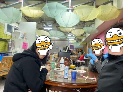 아쉬운 마음을 달래며 편의점에 가서 막걸리 한 병과 안주 거리를 샀다. 나는 방에 들어가서 먹을까 생각했는데 k가 펜션 사장님이 한 건물에서 운영하는 국숫집에 들어가서 먹자고 했다. 들어가니 사장님 부부가 식사를 막 마치고 있었다. 남자 사장님께서 셋이서 수다 떨라며 자리를 비켜주셨다. 혼자 길 건너편 편의점에 가서 사장님은 어떤 술을 좋아하실까 고민하다 알밤 동동이라 적힌 막걸리 한 병과 안주거리를 몇 개 더 사 왔다. 알밤 동동 막걸리를 보더니 여자 사장님께서 '부산은 생탁인데~"라고 했다. k가 다시 가서 생탁으로 바꿔왔다. 여자 사장님께서 갈비찜과 김치를 안주로 내오셨다.