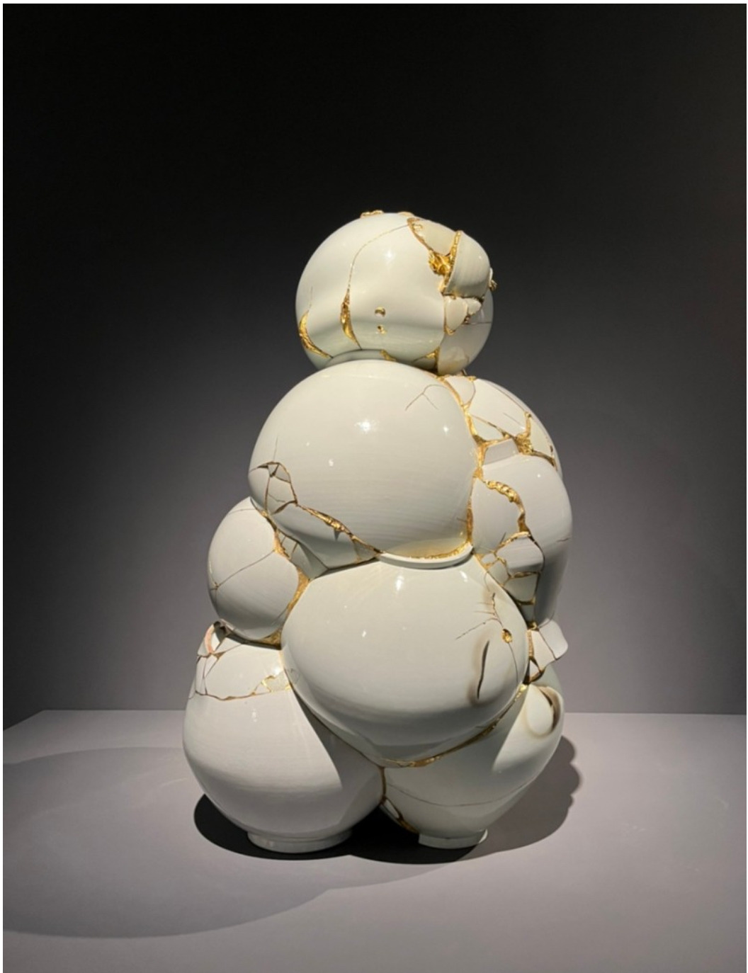 섬세하게 연결하고 장식한 조각들과 그것들이 모여서 구성된 커다란 전체 형상을 다시 바라보면 이음새 사이로 온기가 뿜어져 나올 것 같은 따뜻한 에너지가 느껴진다. 세상의 기준에 상처받고 금이 갔던 내 자존감도 나만의 기준과 관점으로 천천히 보수하다 보면 오히려 상처받기 전보다 단단하고 굳건해질 수 있다는 희망을 건네주는 작품이다.