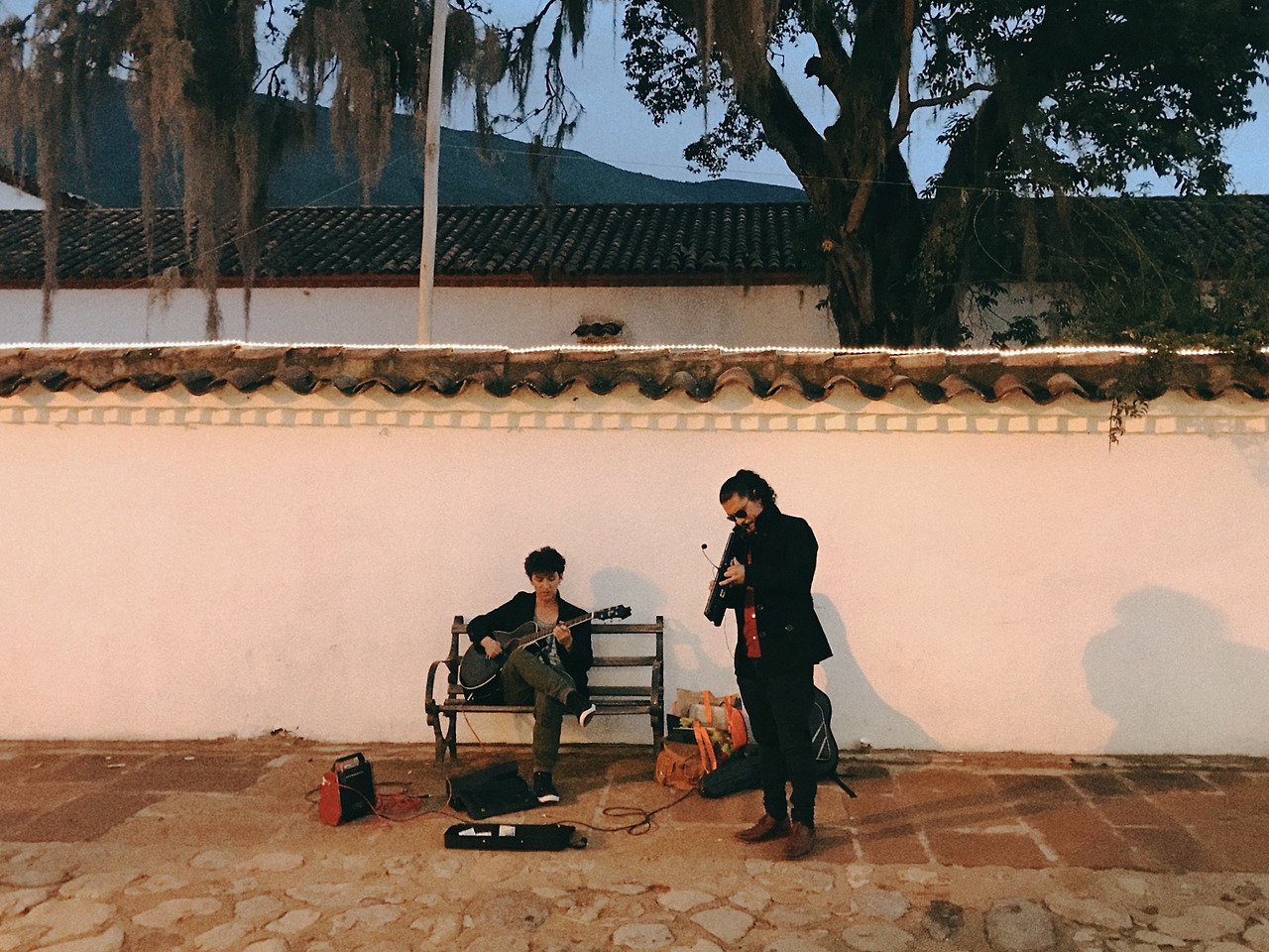 우리를 사로잡은 두 남자 역시 그들 중 한 무리였다. 담배를 하나 입에 물고 기타를 치던 남자 하나와 아코디언을 부는 남자 하나. 멋들어진 선글라스와는 다소 어울리지 않는, 과일이 잔뜩 그려진 귀여운 비닐 가방에 연주에 필요한 이것저것을 챙겨온 것이 어딘가 정이 갔다.