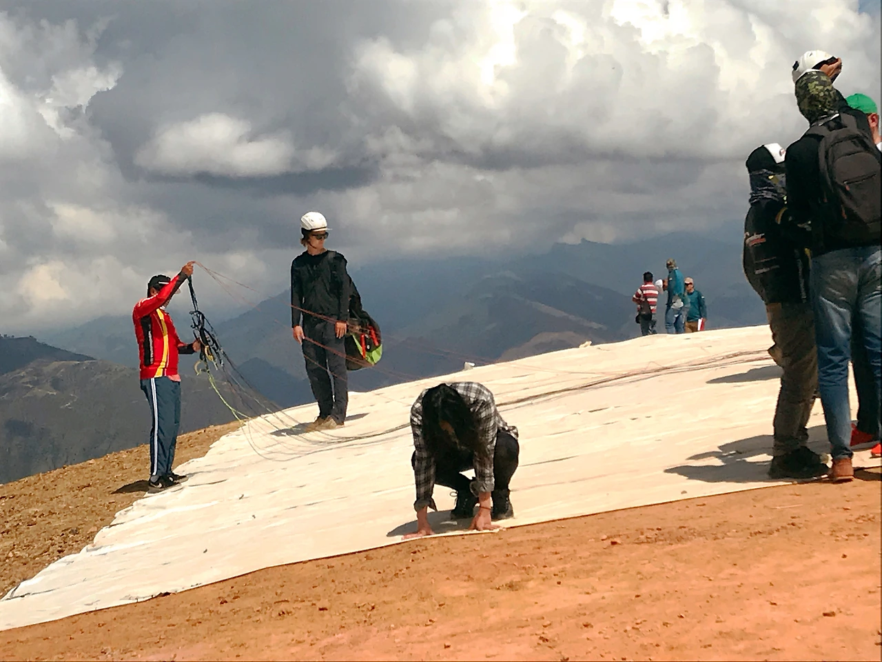 이렇게 높은 곳에서 뛰어내려야 한다니, 슬금슬금 공포가 밀려올 때쯤 이륙 지점에 도착했다. 떠밀리듯 차에서 내려 직원들이 시키는 대로 한 데 모여 앉았다.