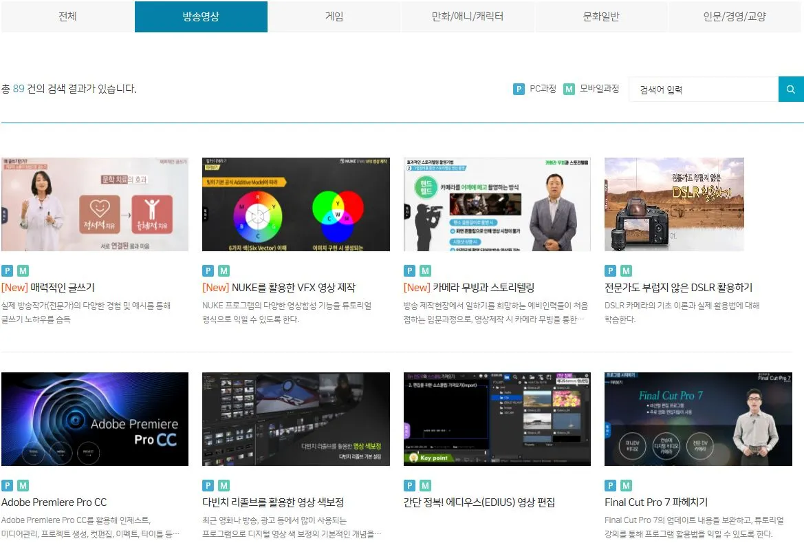 또, 콘텐츠 분야로 관심은 있는데 전공자가 아니라 잘 모르겠다면, '한국콘텐츠진흥원'에서 지원하는 '에듀코카'를 이용해봐. 방송영상부터 인문까지 총 313개의 강의를 들을 수 있어.
