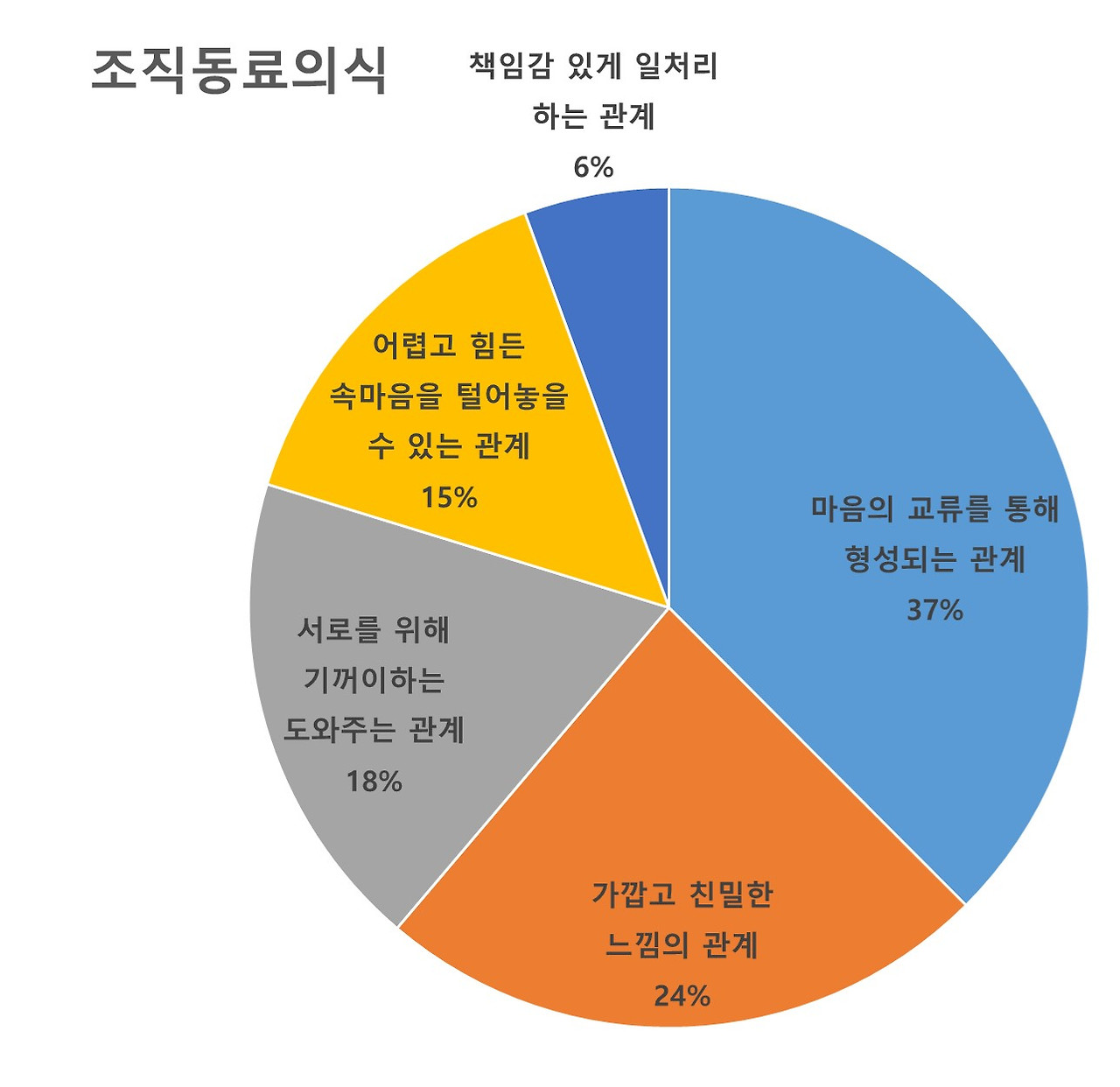 하여, 조직동료의식(Organizational Companionship(De Dreu, 2011) 연구에 따른 질문을 동료 3명에게 해보았다.