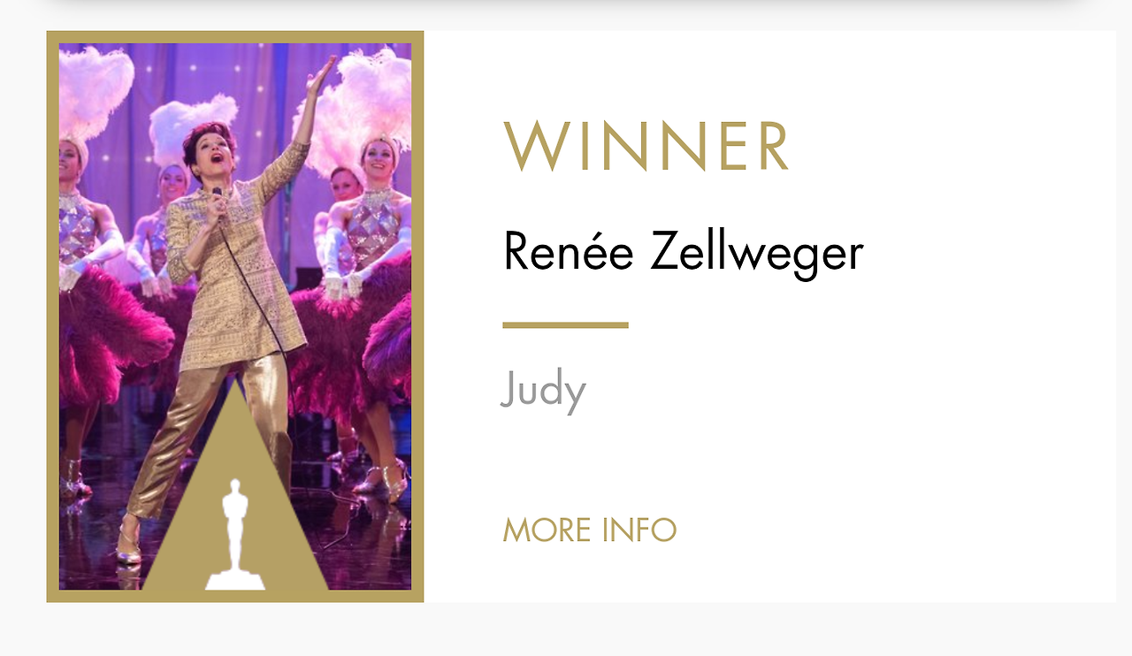수상은 <주디>의 르네 젤위거에게 돌아갔습니다.
