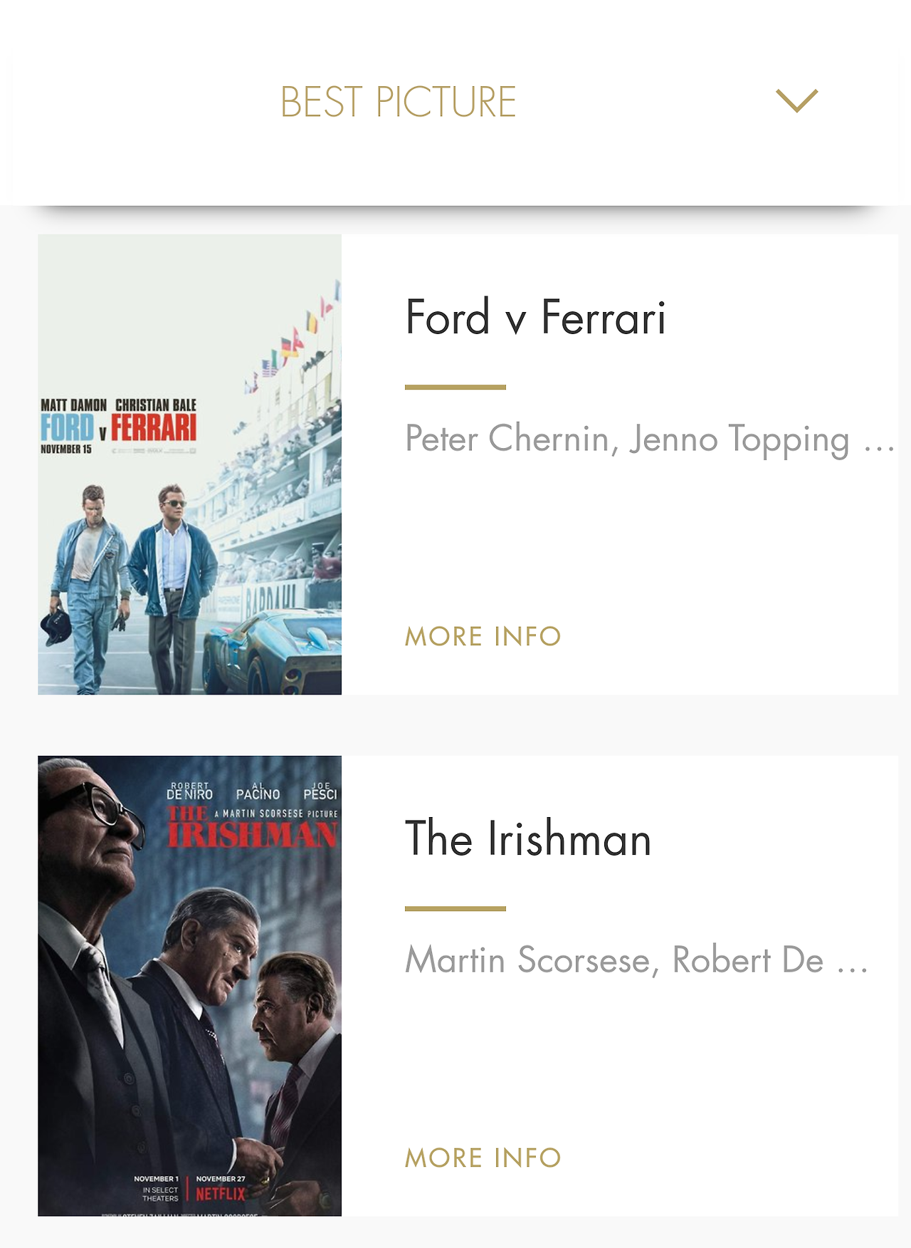 이번 작품상 후보로는 영화 <포드v페라리>, <아이리시맨>, <조조 래빗>, <조커>, <작은 아씨들>, <결혼 이야기>, <1917>, <원스 어폰 어 타임 인 할리우드>, <기생충> 이상 아홉 작품이 이름을 올렸습니다.
