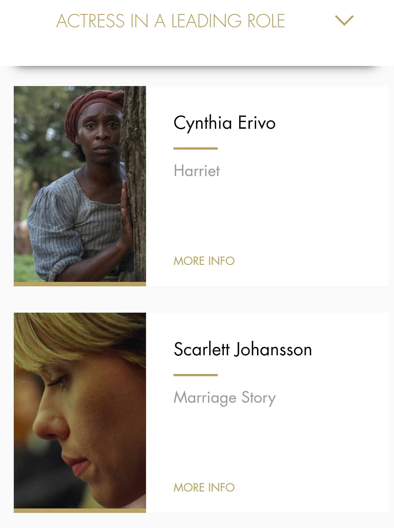 <결혼 이야기>에서 이혼을 준비하는 니콜의 섬세하고 먹먹한 감정을 잘 표현한 스칼렛 요한슨도 후보에 올랐습니다.