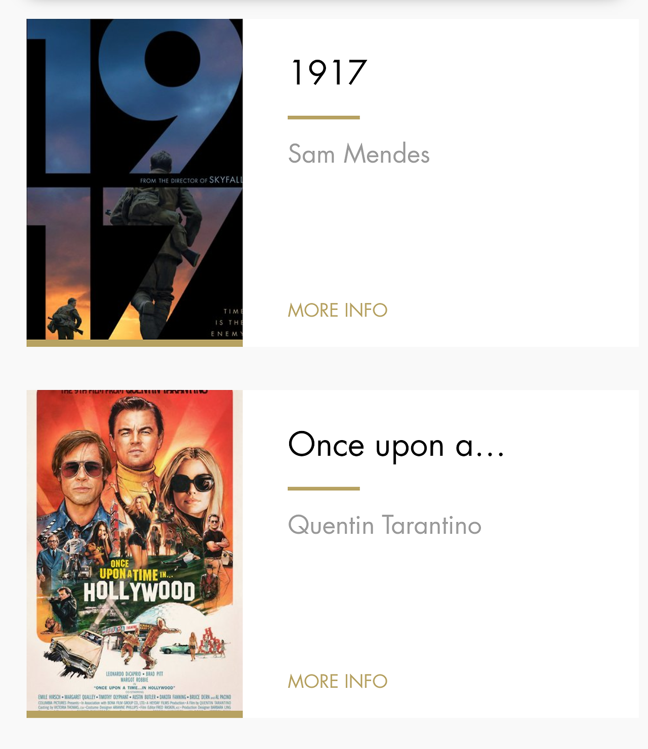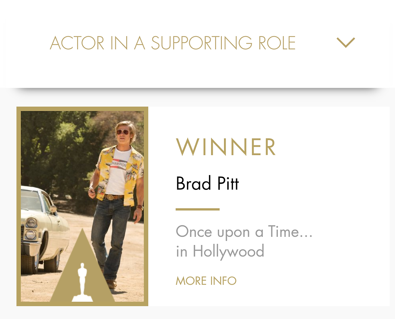 쿠엔틴 타란티노의 <원스 어폰 어 타임 인 할리우드>는 수상에는 미치지 못할 작품이었다 생각했는데, 쿠엔틴 본인도 노미네이트 정도에 만족하고 행사를 즐기는 모습이었습니다.