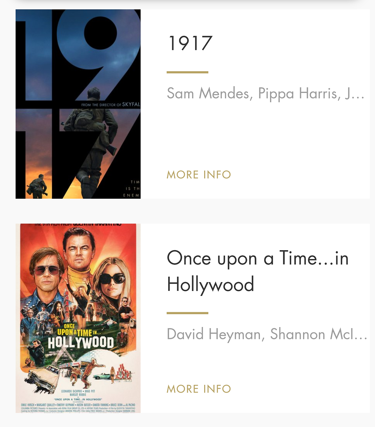 <원스 어폰 어 타임 인 할리우드>는 타란티노 감독이 힘을 좀 빼고 만들어서인지 다른 후보작들에 비해 선이 굵지 못했죠.