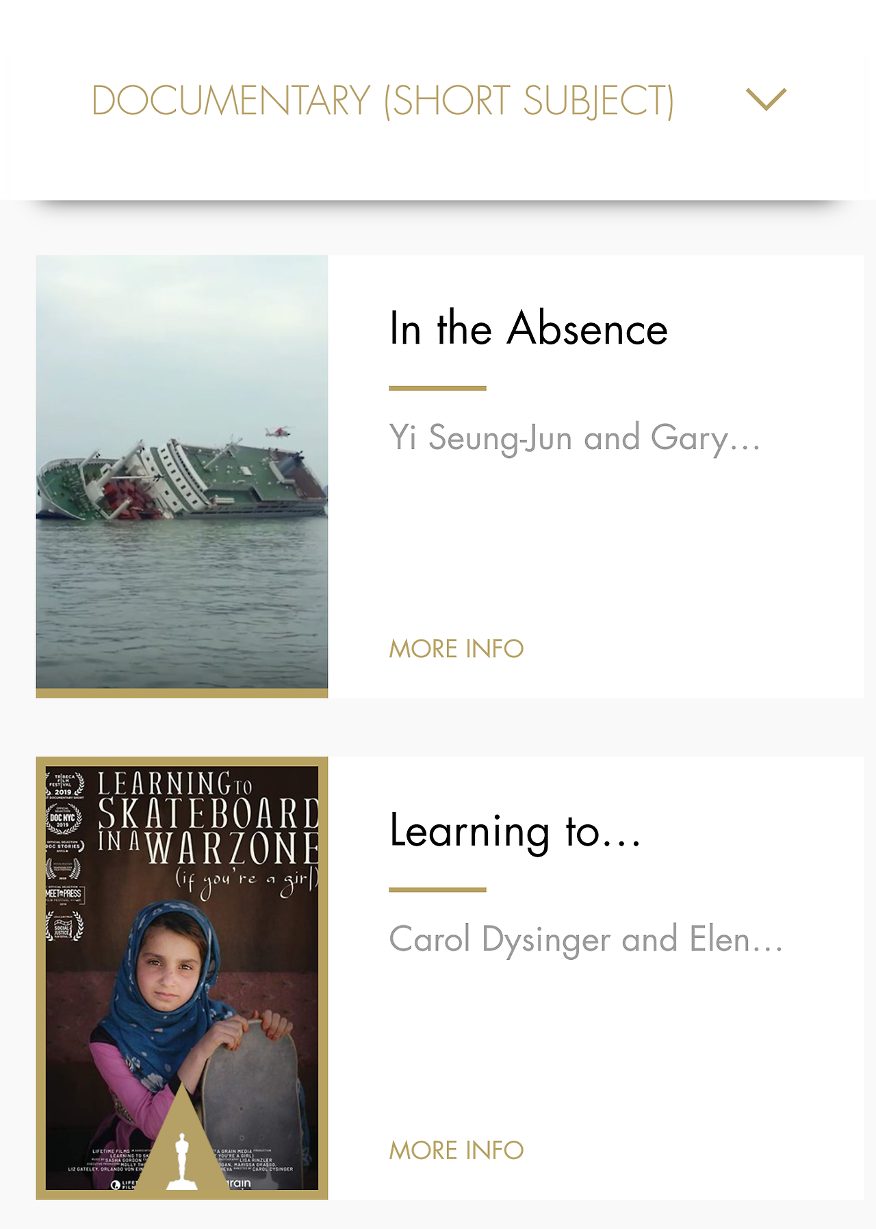 단편 다큐멘터리 부문 수상작은 캐롤 다이싱거 감독의 <러닝 투 스케이트보드 인 어 워존>입니다.
