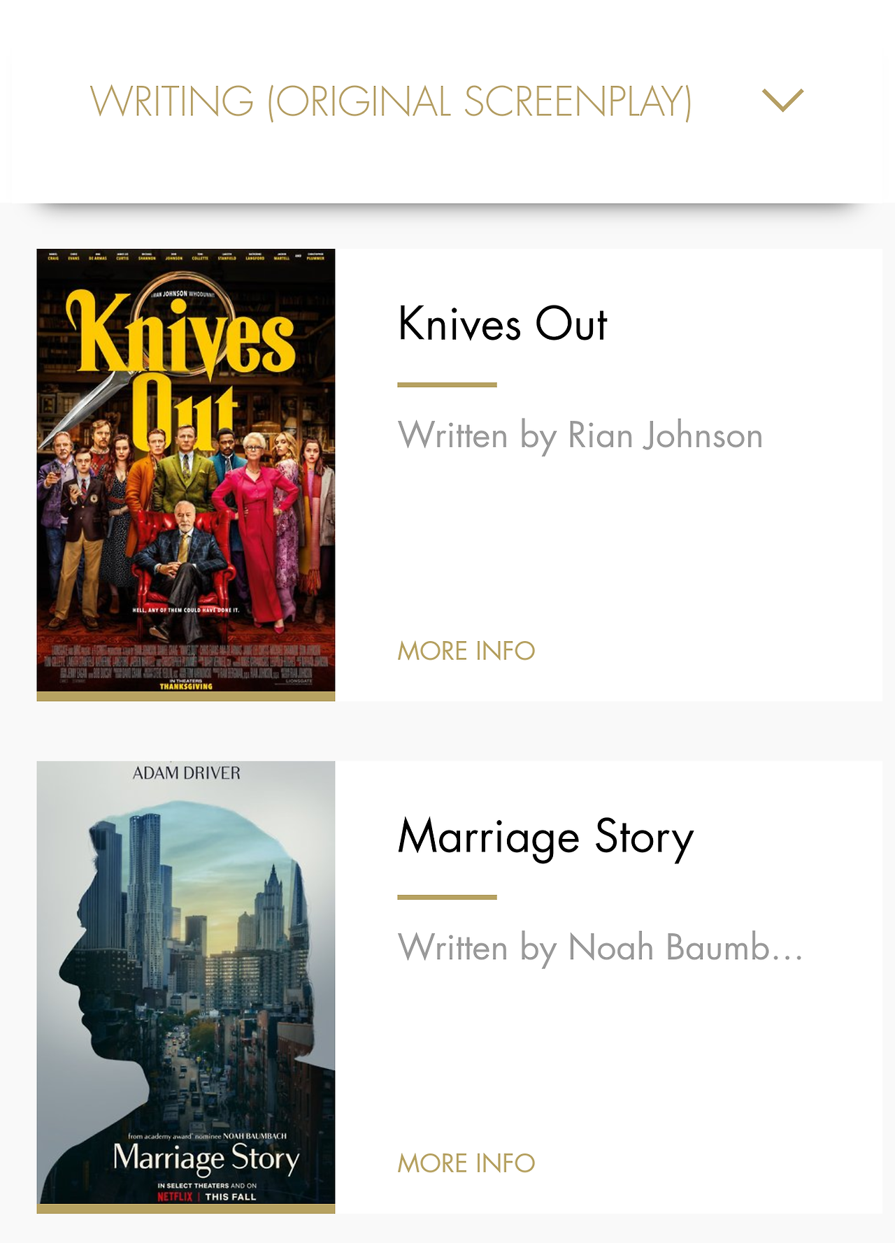 짐작컨데 저는 만약 각본상을 <기생충>이 수상하지 못했다면 <나이브스 아웃>의 수상에 더 공감했을 것이고, <원스 어폰 어 타임 인 할리우드>가 수상했다면
