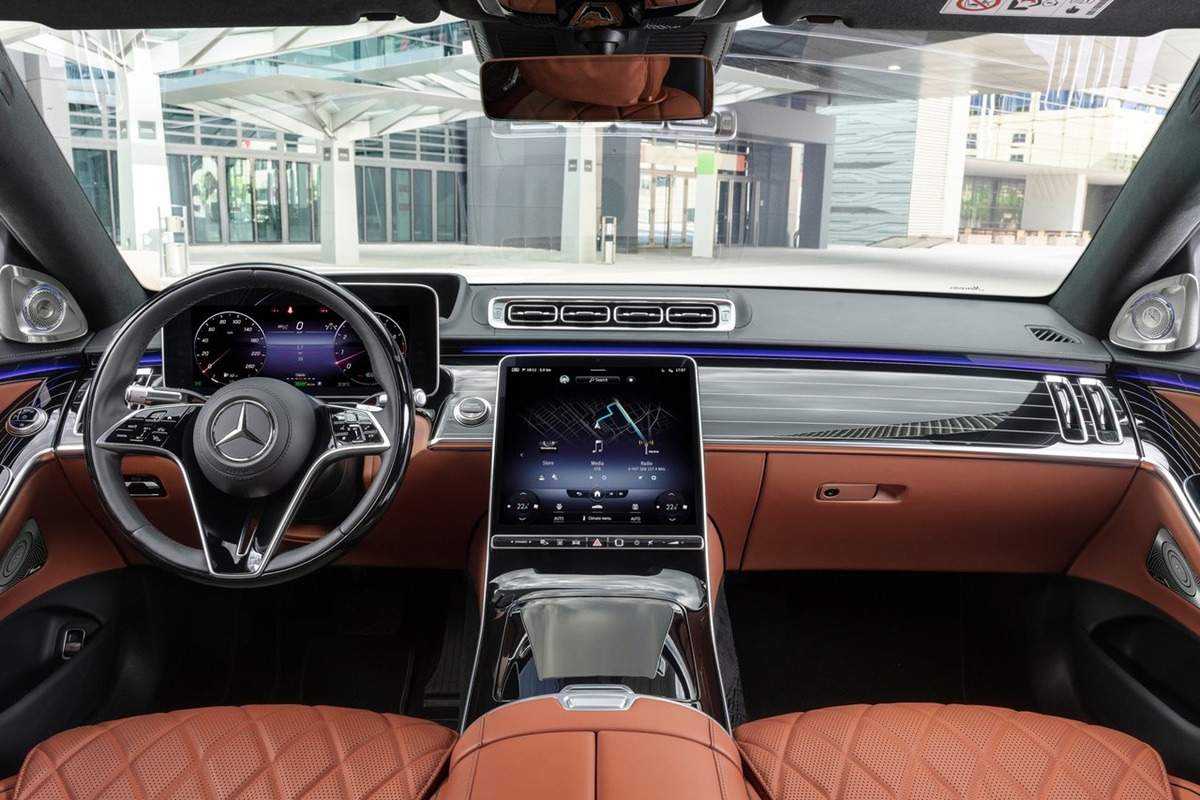 기품 있는 실내 디자인으로 유명한 벤츠의 인테리어는 더욱 진화된 형태로 적용되었다. 기존 곡선형 실내 배치 구조와 달리 S 클래스의 인테리어엔 직선형 구조가 적용되었으며 미래 지향적인 기술력을 강조하면서도 고급스러운 느낌을 극대화했다.