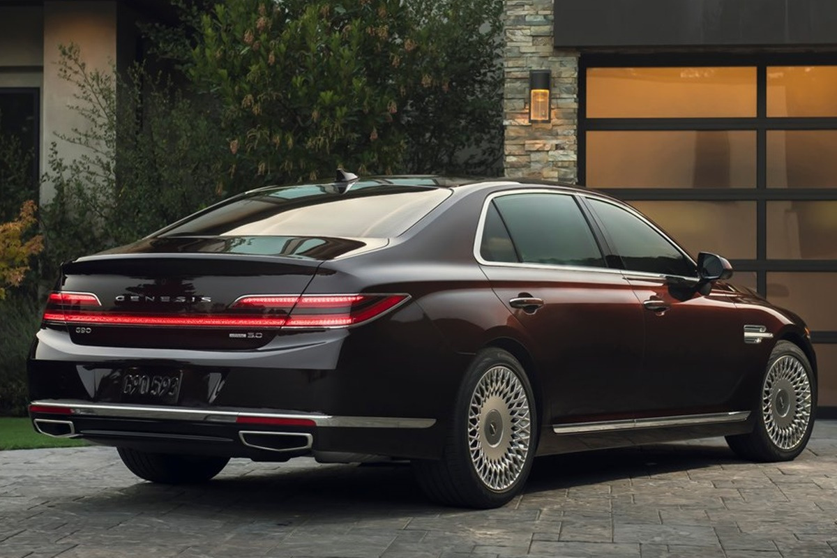 후방에 일자로 이어진 리어램프는 전면과 측면으로 이어지는 라이트와 통일감을 형성하며 차량의 전체적인 균형을 유지한다. 또한 거대한 휠에 격자의 무늬로 독특한 개성을 담아낸 휠 디자인은 제네시스의 고급스러운 느낌을 더욱 부각시킨다.