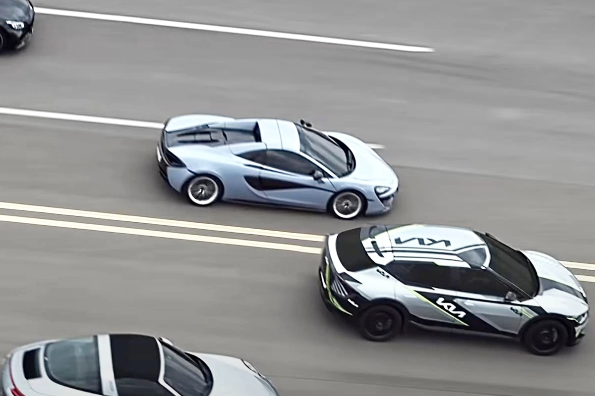 4대의 슈퍼카가 EV6 GT에게 굴욕을 당했지만 유일하게 하나의 모델만 체면을 살렸다. 바로 맥라렌의 570S다. 570S도 전기차의 압도적인 초반 출력으로 인해 중반까지 EV6 GT에게 밀리는 모습이었다. 하지만 결승점엔 가장 먼저 도달한 모델이다.