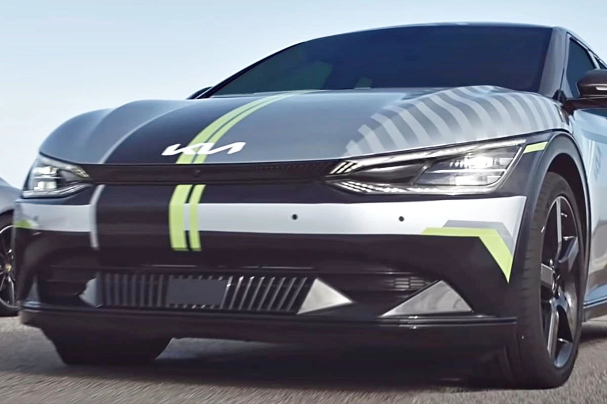 EV6 GT는 430kW 급 듀얼 모터를 적용하여 최고출력 584마력, 최대토크 75.5kg.m의 성능을 발휘한다. 더불어 제로백은 단 3.5초에 불과하다. EV6 GT를 소개하던 중, 갑자기 배경은 활주로 및 서킷으로 보이는 곳으로 이동했고, EV6가 5대의 슈퍼카와 나란히 서있는 모습이 등장했다. EV6 GT의 성능을 보여주기 위해 드래그 레이싱을 펼치기 위함이다.