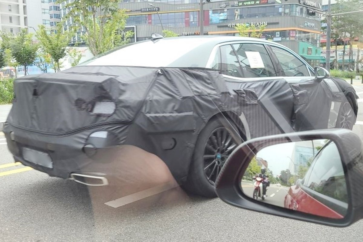 플래그십 세단 G90도 내년에 완전변경을 거쳐 2세대로 거듭난다. 테스트카는 두터운 위장막을 두른 채 포착됐지만, 전면부를 조금 더 확대해보면 어떤 스타일을 가질지 어느 정도 예상해 볼 수 있다.