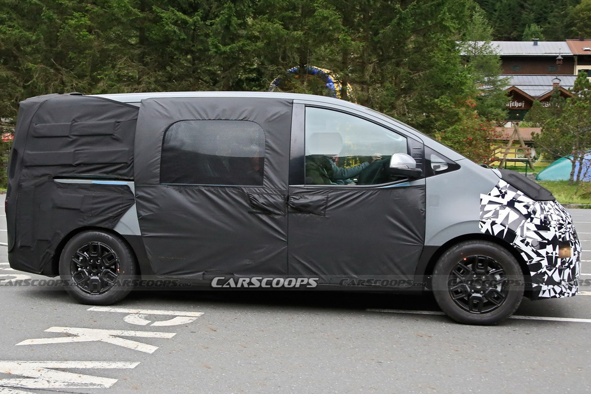 측면부의 문은 기존 스타렉스의 슬라이딩 도어가 그대로 사용된 것으로 보이며 차체의 길이는 기존과 동일하거나 조금 늘어난 것으로 보인다. 전반적인 차량 크기는 큰 변화가 없을 것으로 예상된다.