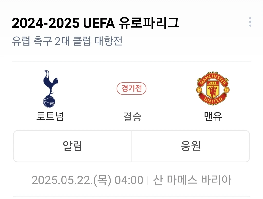 토트넘이 이기면 손흥민의 우승이 기쁠 것이고 맨유가 이기면 아들이 매우 기뻐할 것이므로 손해 볼 것 없는 아저씨가.