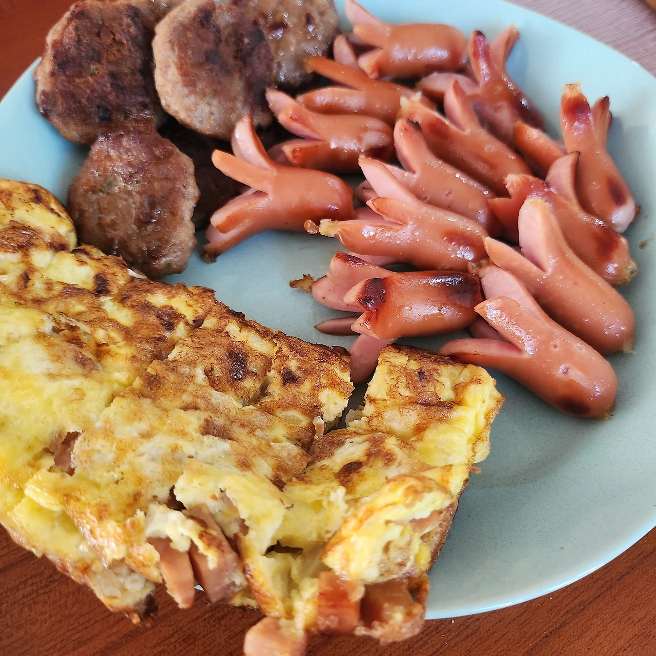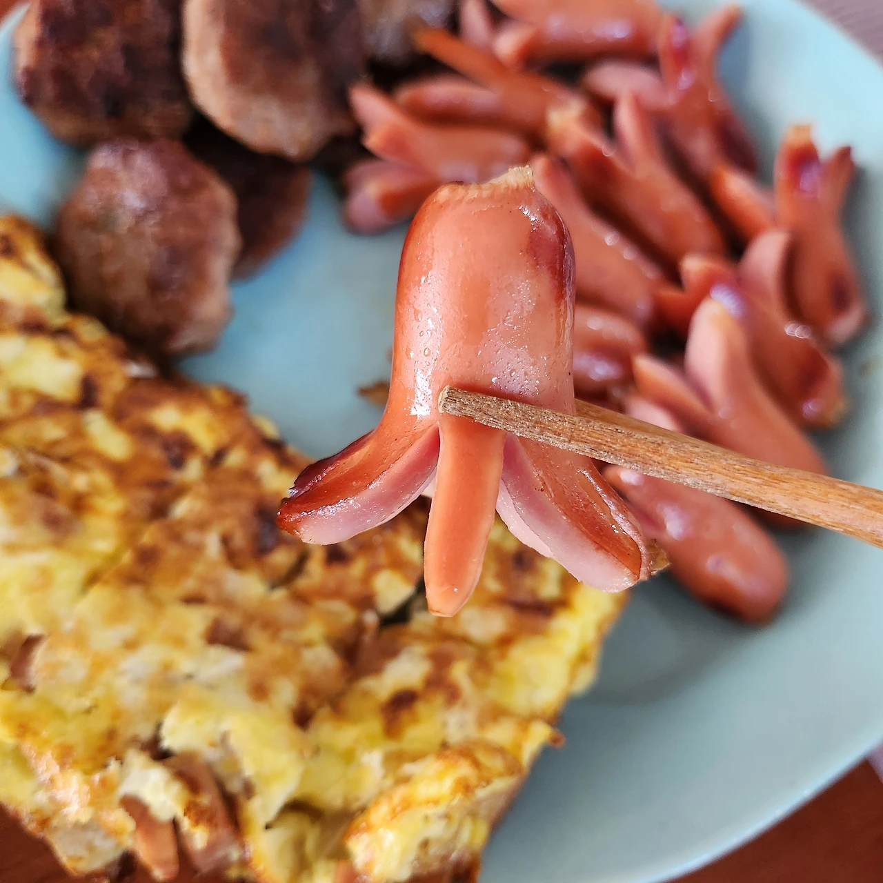 식탁 위에는 모양이 흐트러지지 않은 정갈한 계란말이와 임산부에게 좋다는 미역국, 깜찍한 소시지가 구워져 있다.