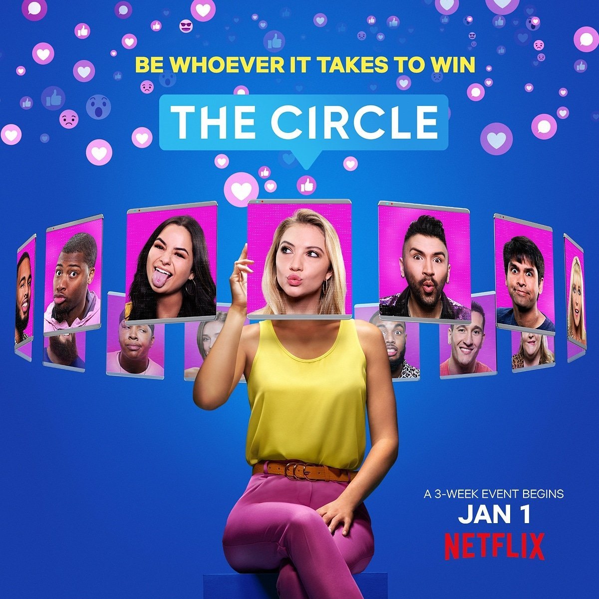 넷플릭스가 제작한 시리즈 <더 서클>은 ‘SNS로 누가 더 소통을 잘하는가’를 겨루는 리얼리티 쇼다. 코미디언 미셸 부토가 호스트이자 내레이터로 참여하는 이 쇼는, 일반인 참가자들을 ‘더 서클’이라 불리는 숙소에 합숙시킨다. 각 1인실을 배정받은 플레이어들은 합숙하는 동안 자신의 방을 함부로 벗어나지 못하며 함께 게임에 참여하는 사람의 얼굴도 직접 볼 수 없다. 제작진에서 자체적으로 만든 ‘더 서클’이라 불리는 SNS 플랫폼을 통해서만 대화를 나눌 수 있다. 플레이어들은 서클에 입주하는 순간부터 자신의 프로필을 업데이트하고 대화에 참여해야 하며, 이때 서로에 대한 첫인상을 토대로 호감도 순위를 작성한다. 한마디로 인기투표를 하는 셈인데, 여기서 1위와 2위(플레이어는 총 8~9명)를 차지한 멤버들은 ‘인플루언서’가 되어 게임에서 탈락할 사람을 고르는 힘을 갖게 된다. 탈락한 멤버의 자리는 새로운 플레이어로 교체되며, 이 경쟁대회는 최후의 5인이 남을 때까지 ‘소통-인상평가-탈락(-교체)’의 서클을 반복한다. 그리고 최후의 5인 중 마지막 투표에서 1위를 한 사람에게는 10만 달러의 상금이 주어진다.