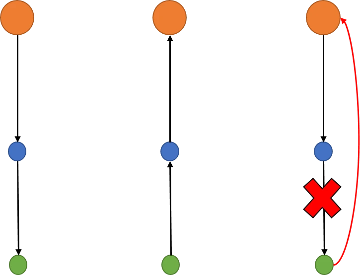 즉, 왼쪽의 그림에서 첫 번째와 두 번째의 경우에는 모든 의사소통이 노드 간 1의 차이를 가진 두 번의 의사소통이 발생했음에 반해 문제가 발생했던 세 번째의 경우에는 한 번은 '박 낮음'에서 '김높음'으로 2의 거리를 가진 의사소통이 발생했고 하나는 1의 거리를 가진 의사소통이 발생한 것이라고 볼 수 있다.