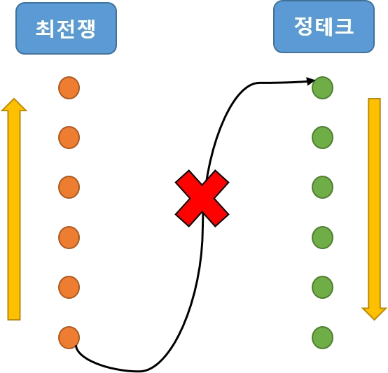 하지만 논의는 점점 산으로 갔다. ‘정테크’가 (가)를 이야기하면 ‘최전쟁’은 (나)를 이야기하며 그를 뒷받침하기 위해 ‘정테크’보다 오래된 업계 경력을 주된 논거로 삼았다.