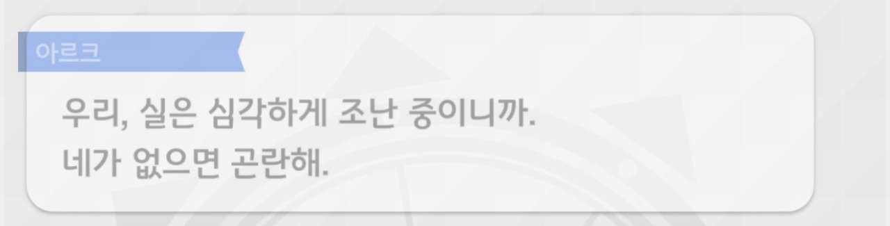물론 정해진 번역 스타일이 있어서 그 가이드라인에 따랐을 가능성도 아주 없지만은 않다. 하지만 "원문을 직역해 주세요"라는 가이드라인이 왔다고 한들, 이 정도의 직역은... 고개를 상당히 갸웃하게 만든다. 용어 통일도 되어있지 않고 스토리마다 번역 퀄리티가 차이가 나는 등 (일부 에피소드는 번역이 상대적으로 깔끔하게 된 부분도 많다. 하지만 저 에피소드의 번역이 워낙 강렬했던 터라, 기억에 잘 남지 않는다.), 팀원들이 소통을 전혀 하지 않고 검수도 면밀하게 하지 않았을 가능성이 크다. 번역을 혼자 하지 않는 이상 (사실 이것은 번역에만 국한되는 사항이 아니지만) 다른 팀원들과 소통하며 작업을 하는 것은 당연하다. 왜냐면 모든 번역에는 개개인의 스타일이 묻어 나올 수밖에 없고, 아무리 정해진 가이드가 있다고 한들 그것을 받아들이고 표현하는 방법 또한 다르기 때문이다. 그래서 이 번역은 더욱 아쉬움을 자아낸다. 한편으로는 번역을 단순히 "우리말로 옮기는 것"으로만 생각하는 것 같아 씁쓸하기도 하다. 모두에서 말한 번역 퀄리티 하락은 바로 이런 쪽으로 영향을 준다. 팀원들의 티키타카가 발휘되기 위해서는 팀원들을 모아 두고 끊임없이 이야기를 나누고, 서로의 스타일을 파악하는 것이 중요하다. 하지만 요즘은 게임 하나를 번역하면 해산, 하나를 번역하면 해산, 이렇게 되다 보니까 번역이 좋지 않게 나와도 책임질 사람이 없어진다. 어떻게 보면 번역에 크게 무게를 두지 않고 번역 작업을 단순한 1회성으로 취급하는 현재의 시스템이 불러온 비극 아닌 비극일 수도 있다는 생각이 든다.