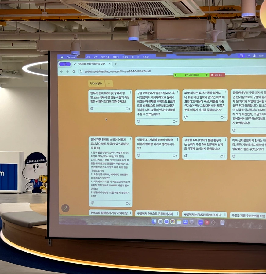 구글은 어떤 회사인가를 경험과 사례를 통해 상세하게 설명해주셨고 어떤 Pm, 개발자, 디자이너가 되고 싶은지 생각해보는 시간이되었다.