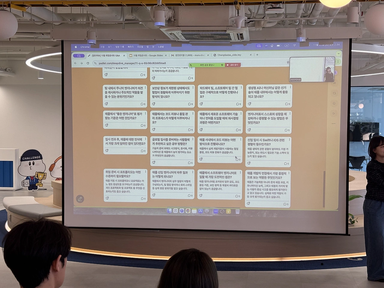 PM, 엔지니어 중심 강연이였지만 AI로 인해 발전과 정보 이용이 가속화된 시대이기에 더더욱 나의 전문 업무에만 집중할 것이 아니라 회사 시스템 전체와 구조를 파악하여 방향성을 바로 볼줄 알아야한다.