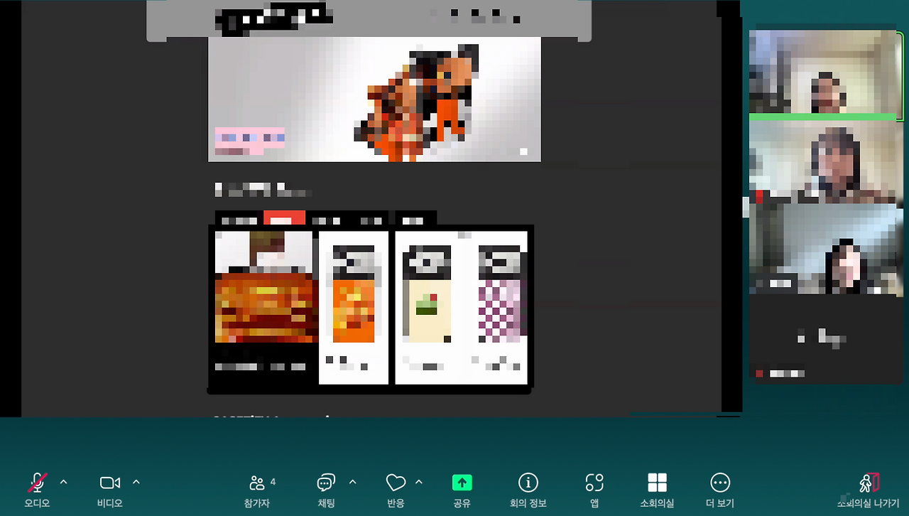 특강 덕분에 3단위 기간에 진행했던 PC 웹 페이지 리브랜딩 UT 테스트 시간에 온라인 원격 테스트를 좀 더 자신감있게 진행해볼 수 있었다. 온라인 환경이기도 하고 시간 관계상 설문조사 같은 형식으로 짧고 간단히 진행될 예정이었으나 온라인 원격 UT 테스트로 인터뷰 형식으로 진행해보았다. 사회자 역할을 맡는 것을 귀찮아하거나 부담스러워 하시지 않고 받아들여주시고 진행까지 원활하게 잘 이끌어주셨던 팀원분 덕분에 나는 내가 가장 잘 할 수 있는 일에 집중할 수 있었고 마지막까지 디자인 수정, 인터뷰 스크립트 작성, 태스크 설정에만 오롯이 집중했다.