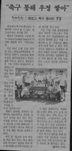 중, 고등학교 시절이 저의 축구사? 에서 가장 왕성하게 활동했던 시기였던 것 같아요. 이때부터 진정으로 축구를 즐기기 시작했거든요. 중학교 2학년 때 축구 동아리를 만들고 체계적으로 잘 운영이 되었어요. 뭐 제가 회장이라서 그런 건가 싶기도 하고(후훗), 당시에는 지역 신문에도 소개될 만큼 유명한 클럽이면서 후배 기수까지 총 50명 정도 활동한 모범 동아리였어요. 동아리가 유명세를 타면서 축구를 잘하는 친구들도 많이 가입해서 다른 팀이 쉽게 이기기 어려운 팀이 되기도 했었죠.