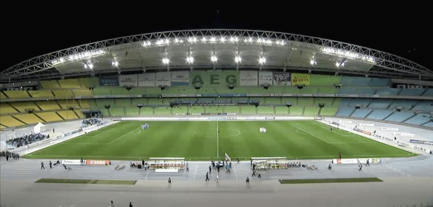 수용 인원 최대 12,000명에 대구 시내에 조화롭게 자리 잡은 아담한 경기장인데요. 지난해 하반기부터 조금씩 궤도에 올라온 경기력과 구단의 홍보 그리고 K리그의 상황에 적합한 규모로 연일 매진 사례를 기록하고 있습니다. 작년까지 사용하던 대구 월드컵 경기장과 달리 10,000명의 관중만으로도 경기장이 꽉 찬 모습이며, 그 응원 소리는 수 만명의 목소리보다 더 크게 들립니다. 실제로 모든 관중이 일제히 알루미늄 바닥을 발로 딛으며 내는"쿵! 쿵! 골!" 구호는 홈 팀인 대구 선수들에게 그 무엇과도 비교할 수 없는 큰 힘이 되고 있으며, 원정 팀들에게는 부담감이 되고 있습니다. 이러한 분위기는 성적으로 그대로 나타났고, 올 시즌 매진을 기록한 세 번의 홈 경기에서 2승 1무를 기록하고 있습니다. 좋은 성적이 팬들을 경기장으로 찾게 만드는 가장 큰 매력이라는 것은 너무나 당연한 이야기일 테니, 대구FC의 홈 경기 티켓을 구하기 힘들다는 이야기가 나오는 것은 어찌 보면 당연할지도 모르겠습니다.