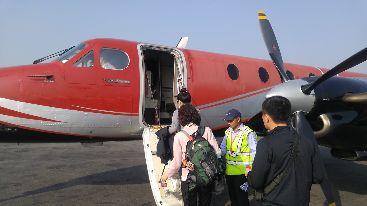 충격적이다. 여긴 한국의 시외버스터미널보다 훨씬 더 소규모다. 연타석 여행 각인은 여기서 시작된다. 작다. 작아도 너무 작다. 대합실뿐만 아니라, 비행기도 너무 작다. 너무 작아서 바람에 실려 날아는 갈 것 같은데, 과연 이 새빨간 16인승 비행기가 포카라까지 나를 정확하게 인도할 수 있을지, 등에서 식은 땀이 난다. 다행히 재잘재잘 나와 같은 인종의 목소리가 들린다. 반가워서 고개를 돌린다.