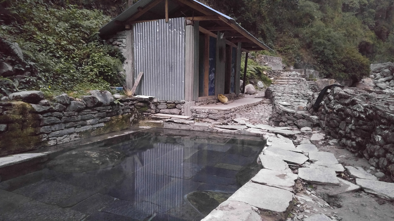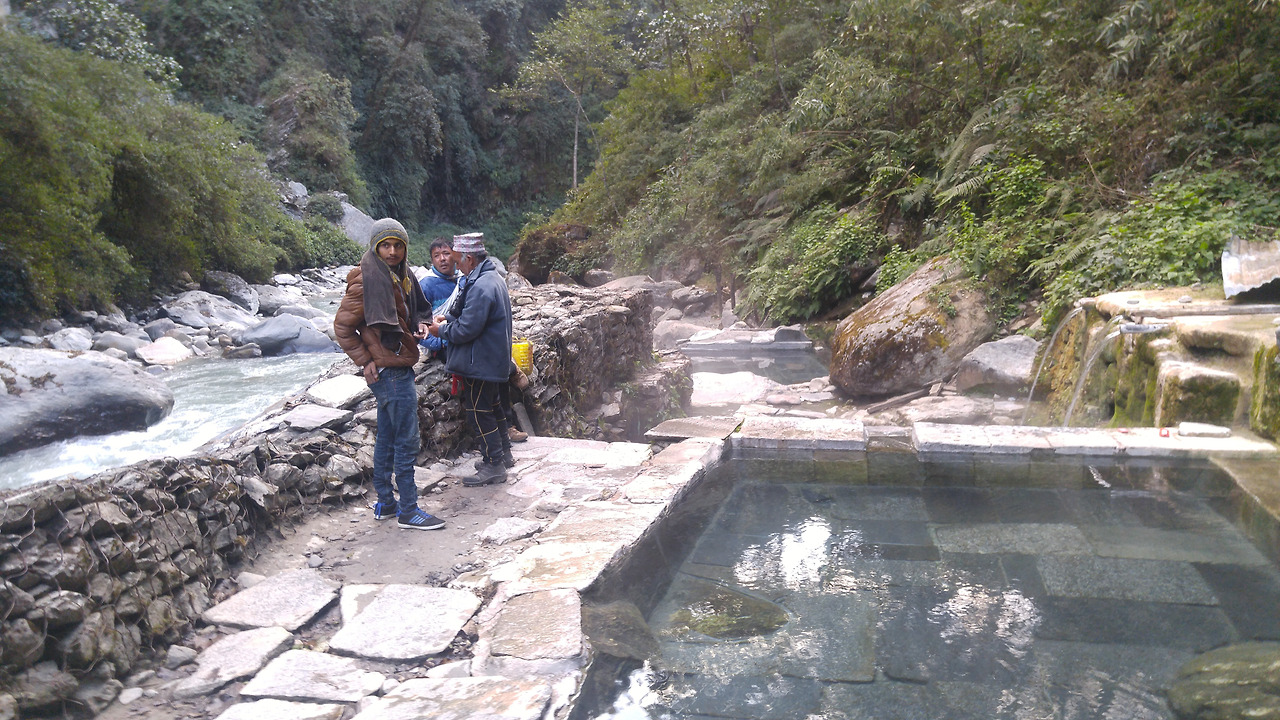 이른 새벽, 잠에서 덜 깬 듯, 발 밑에서 늑장부리고 있는 하얀 안개를 헤치고 오솔길을 따라 30분 정도 걸어 내려가면, 골짜기와 계곡 사이에 사각형으로 반듯하게 구성된 2가지 종류의 온천탕이 드러난다. 잘 조각된 온천탕 위에는 아지랑이가 몽실몽실 수줍게 피어 올라, 걷기에 지친 나를 대범하게 유혹한다. 그렇지 않아도 온천에 환장하는 나는 현재까지 아무도 찾지 않은 온천을 향해 스프링처럼 '첨벙' 뛰어든다.