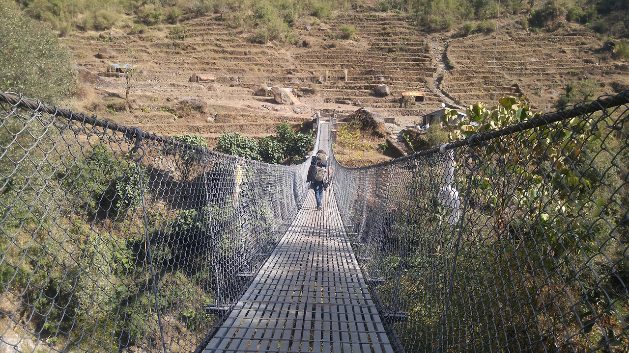 크리샤는 축지법을 완성한 것이 틀림없다. 샘솟는 오기로 따라갈만 하면, 저만치 멀리서 샘솟는 땀을 닦으며 나를 기다리고 있다. 사실 얄미운 감정 따위는 가질 틈이 없다. 그는 나의 무거운 짐마저 메고 달아나지 않는가. 그저 존경의 마음을 담아, 1시간이 채 되지 않았음에도 불구하고 쉬고 가자고 간곡히 부탁한다. 그렇게 오르막과 내리막길, 간곡과 요청 사이에서 실랑이를 벌이다 보면, 의식하지 못한 어느 순간, 촘롱이라는 곳에 도착한다.