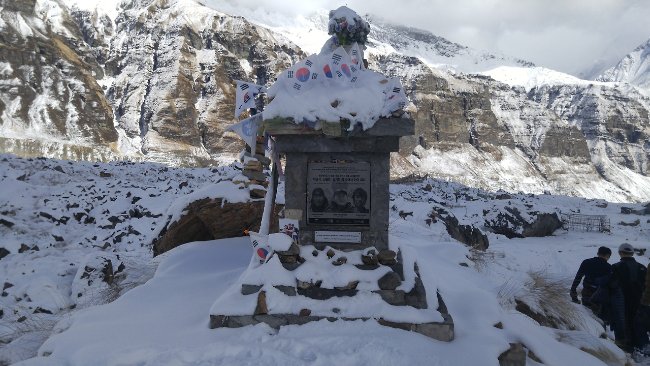 정상에 도착했다는 뭉클함과 정상을 도전하다가 산이 되어버린 먹먹함. 이것이 눈물이 되어 나의 마음을 적신다. 다행히도 흐르는 눈물이 새까만 선글라스에 막혀 하얀 눈 위로 떨어지지는 않았다.