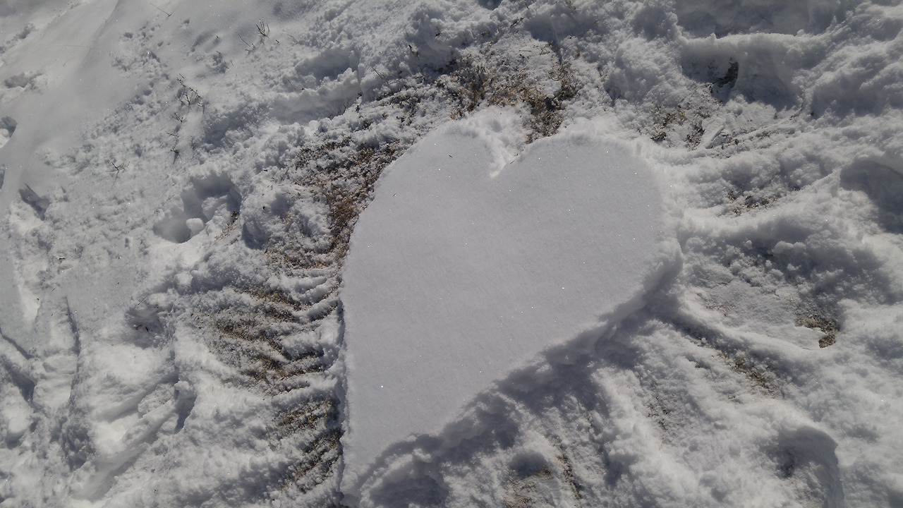 담아내기에 바쁜 우리와 달리, 크리샤는 땅 위에 쌓인 눈으로 대형 하트를 제작한다.