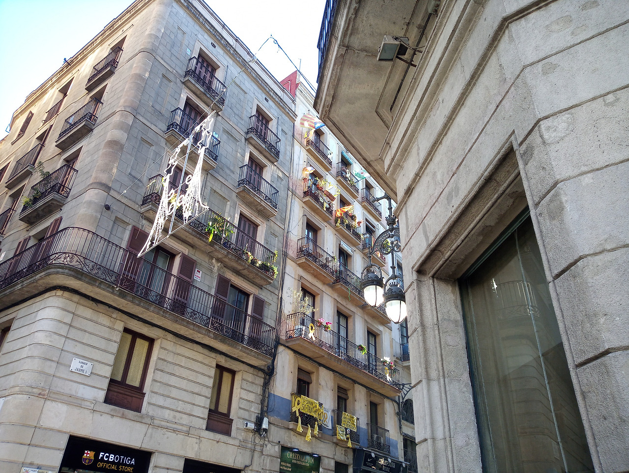 세월호를 추모하려 쓰인 리본이 달려 있었다. 리본은 구속된 카탈루냐 정치인들이풀려나 사람들의 품으로 돌아오길 간절히 바라는 마음에서 단 것이었다.