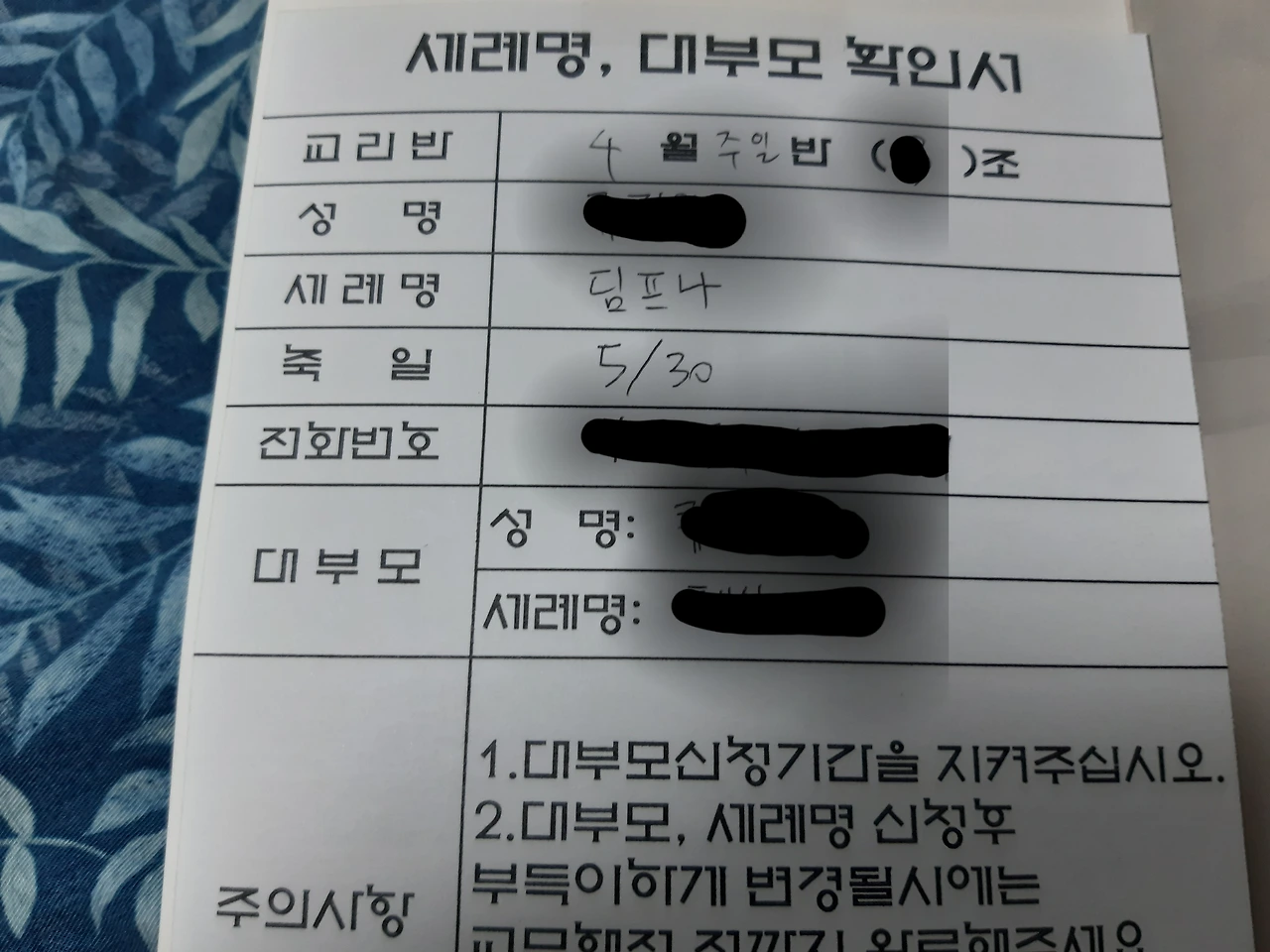 지역 성당에서는 성당 내에서 대부모를 연결해준다고도 하지만 명동성당은 워낙 예비신자도 많고 명동성당에 교적을 두고 있는 신자도 많아서 그런지 따로 대부모를 성당에서 구해주지는 않는다. 즉 세례받는 예비신자가 스스로 구해야 한다. 다행히 나는 가깝게 지내는 친구 중에 견진성사를 받은 가톨릭 신자가 있어 친구에게 얘기했고 친구는 물리적으로 가까이 있는 사람이 대부모가 되는 것이 낫겠다고 생각해서 자신이 먼저 말하지는 않았지만 자신이라도 괜찮으면 해주겠다고 말해주었다. 그래서 나는 생각보다 수월하게 대모를 구할 수 있었다. 그것도 예비자 교리 시작 전부터.