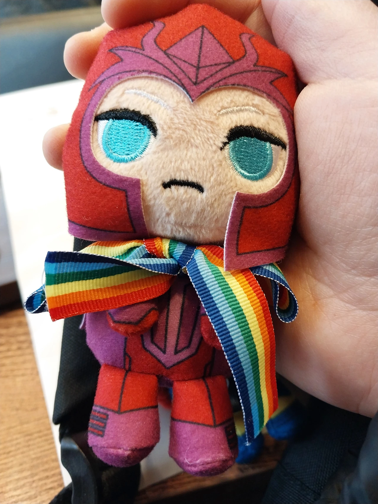 성당 가려고 버스 기다리는데 어떤 할머니께서 내 가방에 달려있는 매그니토 인형이 예쁘다고 하셨다. 무지개 리본을 매둔 것 때문인 것 같은데 이게 뭔 의미인지는 아시려나...