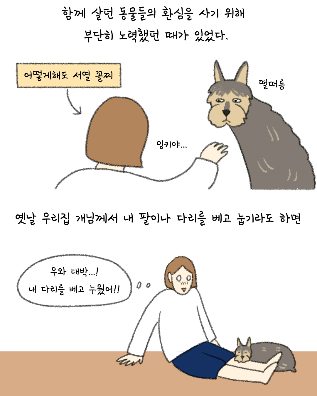 어머니는 밍키에게 늘 서운해하는 저에게 ‘원래 밥 주는 사람이 최고인거야’ 라고 말씀하시곤 했습니다.