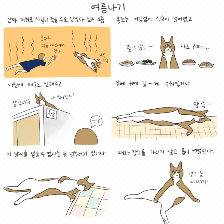 13살 고양이와의 이야기를 그리고 있습니다. instagram @cathongzo <홍조일기> 책은 교보문고 등 온라인 서점 및 오프라인 서점에서 구입 가능합니다.