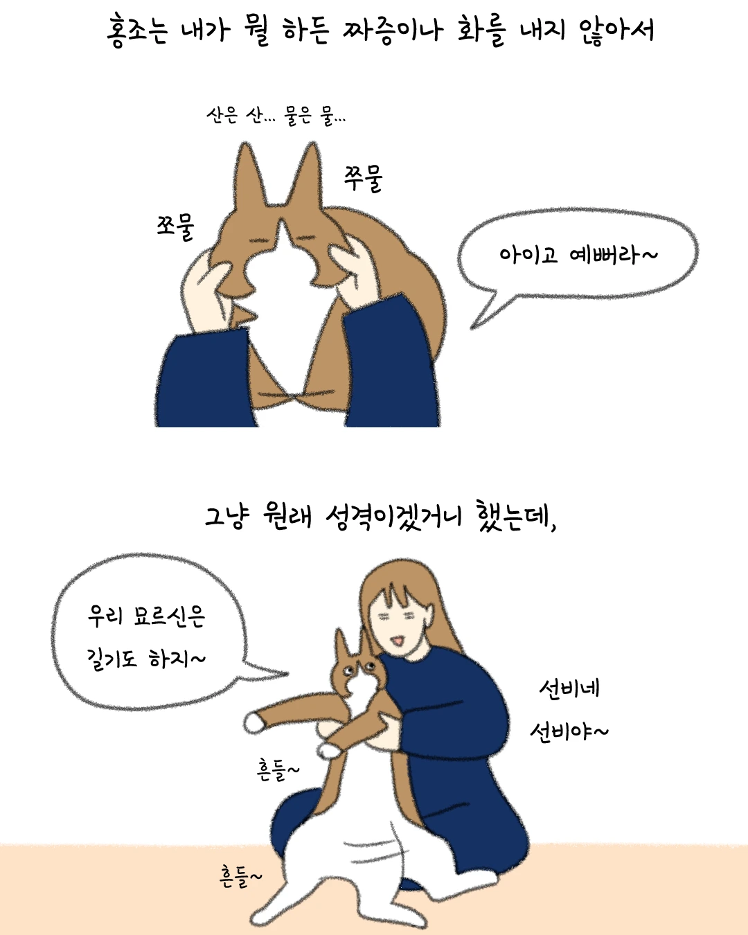 묘르신 홍조와의 살림살이 이야기를 담은 <1인 1묘 살림일지>는 저스툰에서 연재중입니다.
