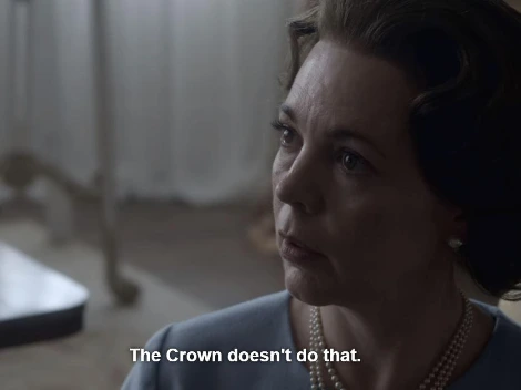 현장에 가서 주민들을 위로해달라는 총리의 요청을 여왕은 거부한다. 내가 나타남으로서 구조현장을 마비시키고 싶지 않다. 위로를 하라니 쇼를 하라는 말인가. 군주는 그런 일을 하지 않는다, 라며. 일견 생각하면 합리적이다. 가서 일에 방해나 되지 내가 가서 무슨 실질적인 도움이 되겠는가.