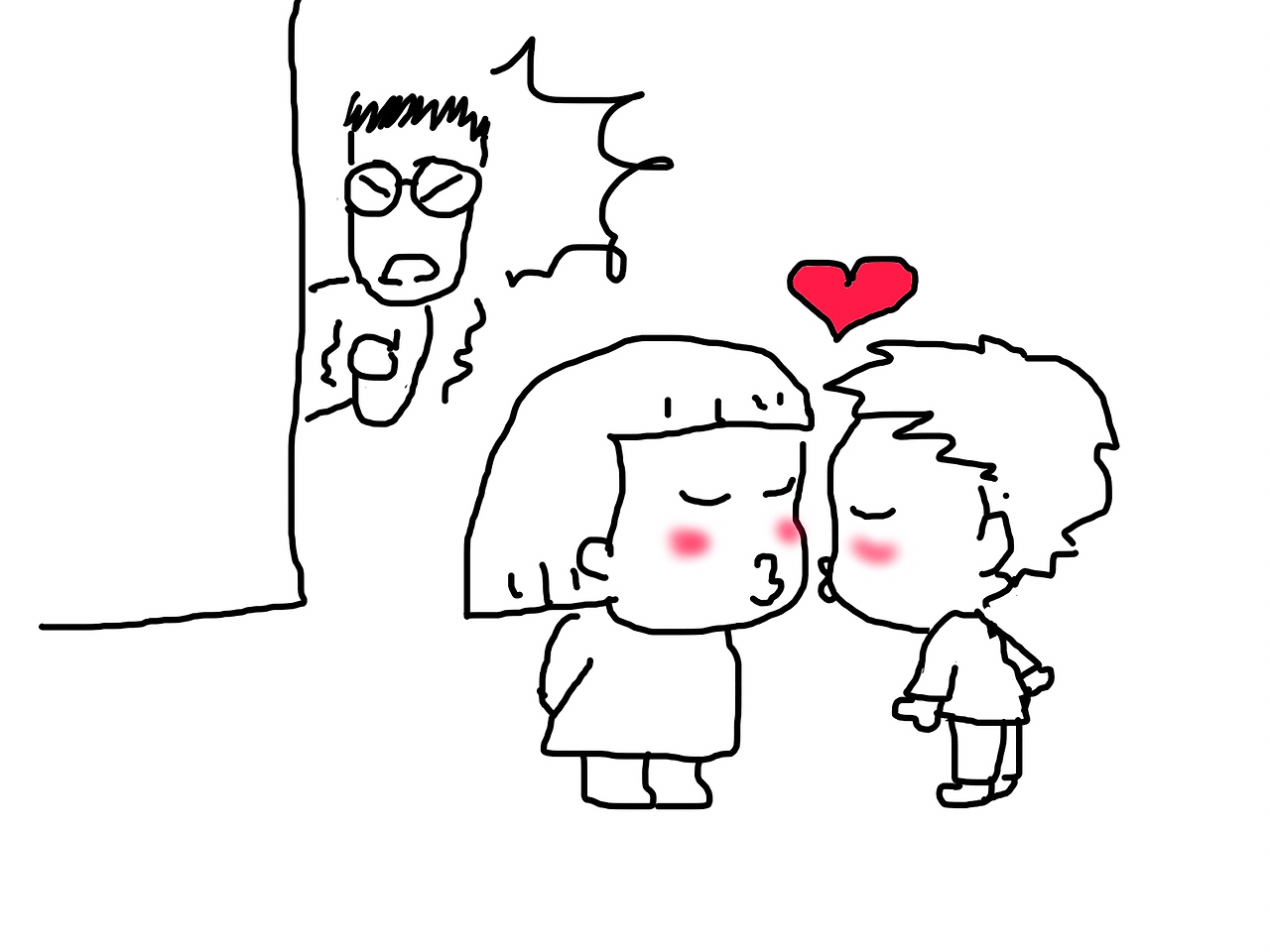 올해 7세인 딸아이가 유치원에서 다른 남자어린이랑 뽀뽀를 했다는 얘기에 아빠가 펄쩍 뛰는 상황을 그려보았습니다.